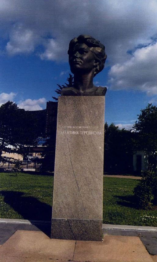 объемно-пространственная композиция и оформление памятника 1967 года, включая постамент, бюст В.Николаевой-Терешковой, в том числе габариты и высотные отметки (согласно фотофиксации элементов предмета охраны);конструкция, материал (бронза, гранит), характер и виды обработки поверхностей (бронзовое литье, патинирование, полировка, шлифовка), колористическое решение памятника 1967 года;шрифтовые композиции памятника 1967 года: \"ЛЕТЧИК-КОСМОНАВТ СССР ВАЛЕНТИНА ТЕРЕШКОВА\" – на лицевой стороне постамента, \"лепил ск. ПОСТНИКОВ Г.\" – с левой стороны на торце бюста 1967 года прописным шрифтом, \"отл. бр. мастера-художника В.Лукъянова г. Москва 1967 г. ГЛАВМОСПРОМСТРОЙМАТЕРИАЛЫ\" – с правой стороны на торце бюста 1967 года прописным шрифтом, включая колористическое решение, техники нанесения, характер и фактуру шрифта (согласно фотофиксации элементов предмета охраны).Изменение предмета охраны может быть осуществлено в порядке и случаях, предусмотренных законодательством об объектах культурного наследия.