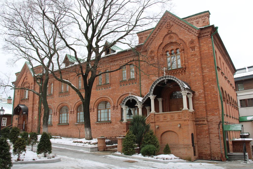 местоположение и градостроительные характеристики здания 1909 года, участвующего в формировании фронта застройки 2-го Зачатьевского переулка, его роль в композиционно-планировочной структуре ансамбля монастыря и квартала (согласно приложению к настоящему предмету охраны);объемно-пространственная композиция двухэтажного с подвалом и цокольным этажом здания 1909 года сложной конфигурации в плане (согласно приложению к настоящему предмету охраны), в том числе высотные отметки по венчающим карнизам, щипцовым фронтонам и аттикам;крыши начала XX века, их конфигурация, материал, характер кровельного покрытия, в том числе высотные отметки по конькам, включая слуховые окна, печные и вентиляционные трубы;композиционное решение и архитектурно-художественное оформление фасадов 1909 года, включая размер, форму, местоположение, оформление оконных и дверных проемов, в том числе ризалиты с щипцовыми фронтонами, наличники окон, лопатки восточного фасада, венчающий профилированный кирпичный карниз с поясом поребрика и городчатым фризом (согласно приложению к настоящему предмету охраны);материал и характер отделки фасадных поверхностей 1909 года: открытая краснокирпичная кладка с затиркой швов;колористическое решение фасадов 1909 года;пространственно-планировочная структура интерьеров здания в пределах капитальных стен, колонн, прямоугольных и арочных проемов и перекрытий 1909 года (согласно приложению к настоящему предмету охраны);капитальные стены, колонны и перекрытия 1909 года, их конструкция и материал, включая сводчатые перекрытия типа \"Монье\" (согласно приложению к настоящему предмету охраны);лестницы 1909 года, их местоположение, конструкция, материал, декоративное оформление (согласно приложению к настоящему предмету охраны);архитектурно-художественное оформление интерьеров начала XX века: профилированные карнизы потолков, четыре металлических колонны, два ряда крупных кессонов, архивольты и импосты арок в зале трапезной (согласно приложению к настоящему предмету охраны);характер оформления столярных заполнений оконных и дверных проемов начала XX века.Изменение предмета охраны может быть осуществлено в порядке и случаях, предусмотренных законодательством об объектах культурного наследия.