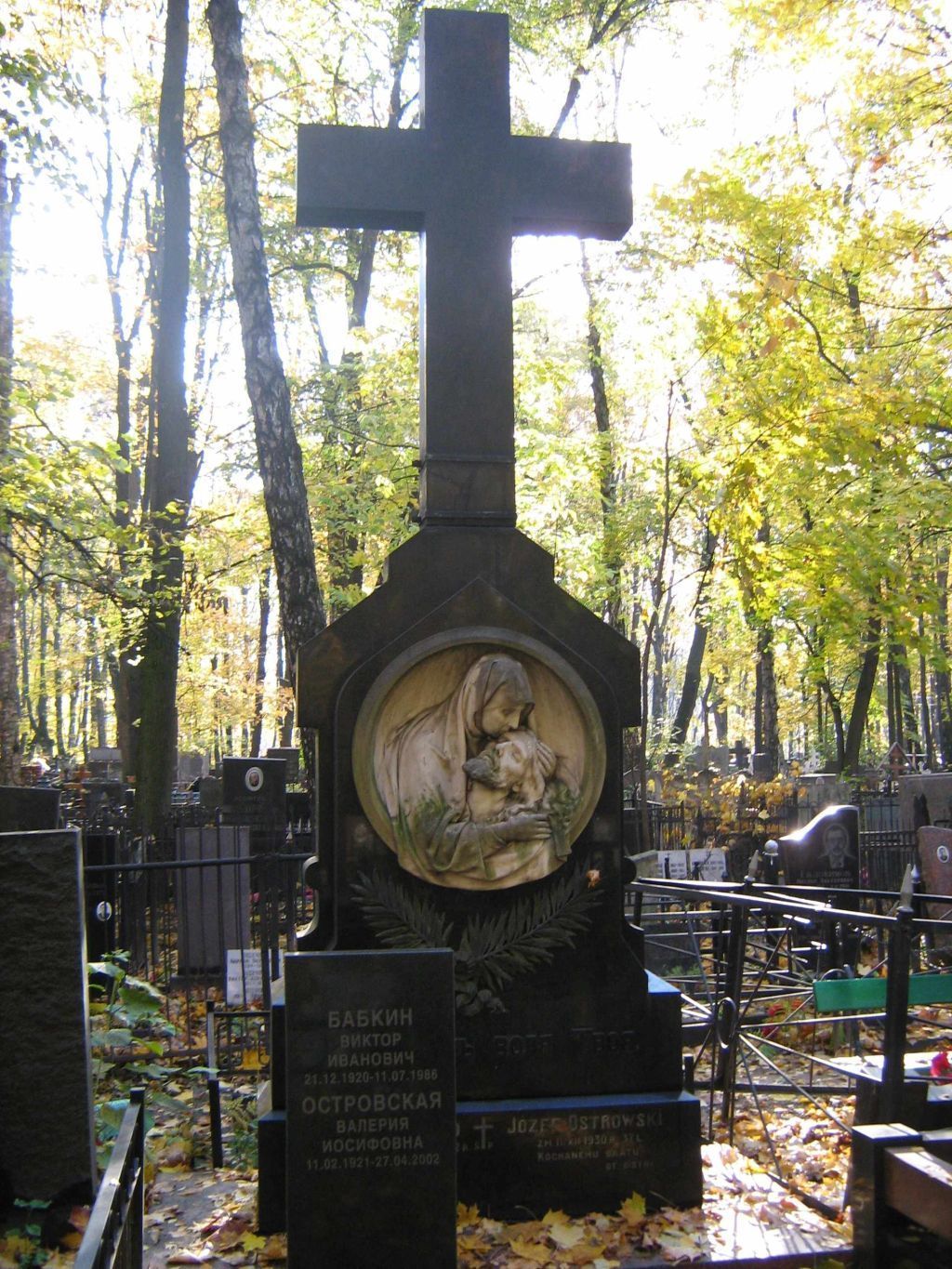 местоположение надгробия начала XX века на семейном захоронении Кобылко, расположенного на участке № 25 Введенского кладбища (согласно приложению к настоящему предмету охраны);объемно-пространственная композиция и архитектурно-художественное решение надгробия начала XX века, включая плиту-основание, цоколь, стелу-голгофу с фигурным абрисом, четырехконечный крест, медальон с килевидным завершением, барельефное поясное изображение Богоматери и Христа, композицию из перекрещенных пальмовых ветвей с бантом, в том числе габариты и высотные отметки сооружения (согласно приложению к настоящему предмету охраны);конструкция, материал (габбро, гранит, мрамор, бронза), характер (фактура), виды обработки поверхностей (полировка, шлифовка, резьба, литье) и колористическое решение;шрифтовые композиции \"ДА БУДЕТЪ ВОЛЯ ТВОЯ\" под композицией с пальмовыми ветвями, \"JOZEF KOBYLKO UR. 18/IX 1884 R. – ZM. 26/IV 1942 R. KOCHANEMU MEZOWI OJCU OT ZONY I CURKI\", \"S. † P.\", \"JOZEF OSTROWSKI ZM. 11/XII 1930 R. 37 L. KOCHANEMU BRATU 57 OT SISTRY\" на цокольной лицевой части надгробия, в том числе клеймо изготовителя с изображением крепежных винтов и текстом: \"Н.А. ЗАХАРОВЪ МОСКВА ЯУЗСКIЙ МОСТЪ\" на западной стороне надгробия, включая технику нанесения (рельеф, контррельеф), характер шрифта (темные глянцевые буквы на светлом шероховатом заглубленном фоне) (согласно приложению к настоящему предмету охраны).Изменение предмета охраны может быть осуществлено в порядке и случаях, предусмотренных законодательством об объектах культурного наследия.