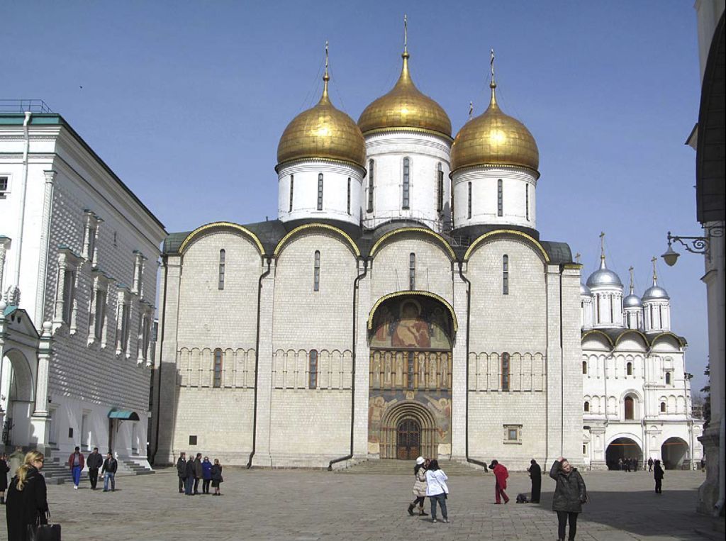 Археологический слой под площадью застройки объекта.Градостроительные характеристики:- местоположение в объекте культурного наследия федерального значения «Московский Кремль - ансамбль памятников архитектуры XV - XVI, XVII, XVIII, XIX вв.»: в северной части Соборной площади;- композиционная роль в планировочной структуре объекта культурного наследия федерального значения «Московский Кремль - ансамбль памятников архитектуры XV - XVI, XVII, XVIII, XIX вв.»: градостроительная и композиционная доминанта Соборной площади, главный храм Московского (Российского) государства в XV- начале XX вв;- габариты XV век;- секторы и направления видовых раскрытий, визуальные связи c Соборной и Ивановской площадей, с Большого Москворецкого моста, с Софийской набережной.Архитектурные и конструктивные характеристики:- объемно-пространственная композиция монументального прямоугольного вытянутого в плане пятиглавого трехнефного шестистолпного четырехпрестольного храма XV века с пятью пониженными апсидами, уплощенными на фасаде, заглубленными внутрь храма, алтарной преградой; «зального» типа с 12 одинаковыми ячейками, перекрытыми одинаковыми крестовыми сводами (5 ячеек перекрыто куполами с барабанами), включая высотные отметки;- композиционное решение и архитектурно-художественное оформление фасадов XV века:высокий профилированный цоколь;членение лопатками на четыре прясла (на северном и южном фасадах), на три прясла (на западном и восточном фасадах), завершенных полукруглыми закомарами, лопатки-контрфорсы, фланкирующие алтарные апсиды;перспективные белокаменные порталы с «дыньками», с полуциркульным завершением и наружными росписями фасадов храма;широкий аркатурно-колончатый пояс, проходящий по центру фасадов;круглые трехчетвертные колонки между апсидами;- местоположение и характер оформления первоначальных высоких щелевидных оконных проемов; небольших квадратных окон с наличниками, пробитых при устройстве ризницы в XVII в.;- завершение храма XV века с позакомарным покрытием медной кровлей основного объема, группой из пяти позолоченных куполов луковичной формы на высоких барабанах, сдвинутой к востоку, с повышенным центральным куполом, с позолоченным подзорами позакомарного покрытия и основания купола;- материал и характер отделки фасадных и внутренних поверхностей, включая кладку стен из кирпича с облицовкой фасадов блоками белого камня, своды, барабаны, алтарная преграда из кирпича, столбы – из кирпича, облицованы белым камнем;- пространственно-планировочная структура интерьеров здания в пределах капитальных стен и сводчатых перекрытий XV-XVII веков, включая систему расположение дверных проемов в интерьере храма;- капитальные стены в интерьере объема, включая первоначальные крестовые своды храма XV века, своды приделов в юго-восточной части алтаря XVII века - цилиндрические с распалубками своды нижнего яруса (придел Дмитрия Солунского), парусный свод ризницы;- открытые белокаменные крыльца – а паперти XV века (реставрационные) на южном и северном фасадах, крыльцо с сенью на западном фасаде XV века с переделками XVII и XIX веков, их местоположение, конструкции, материал и декоративное оформление, в том числе каменные ступени, каменные плиты;- наружные росписи храма XV-XVII веков (фрески), включая декоративное оформление порталов:на южном фасаде – центральн