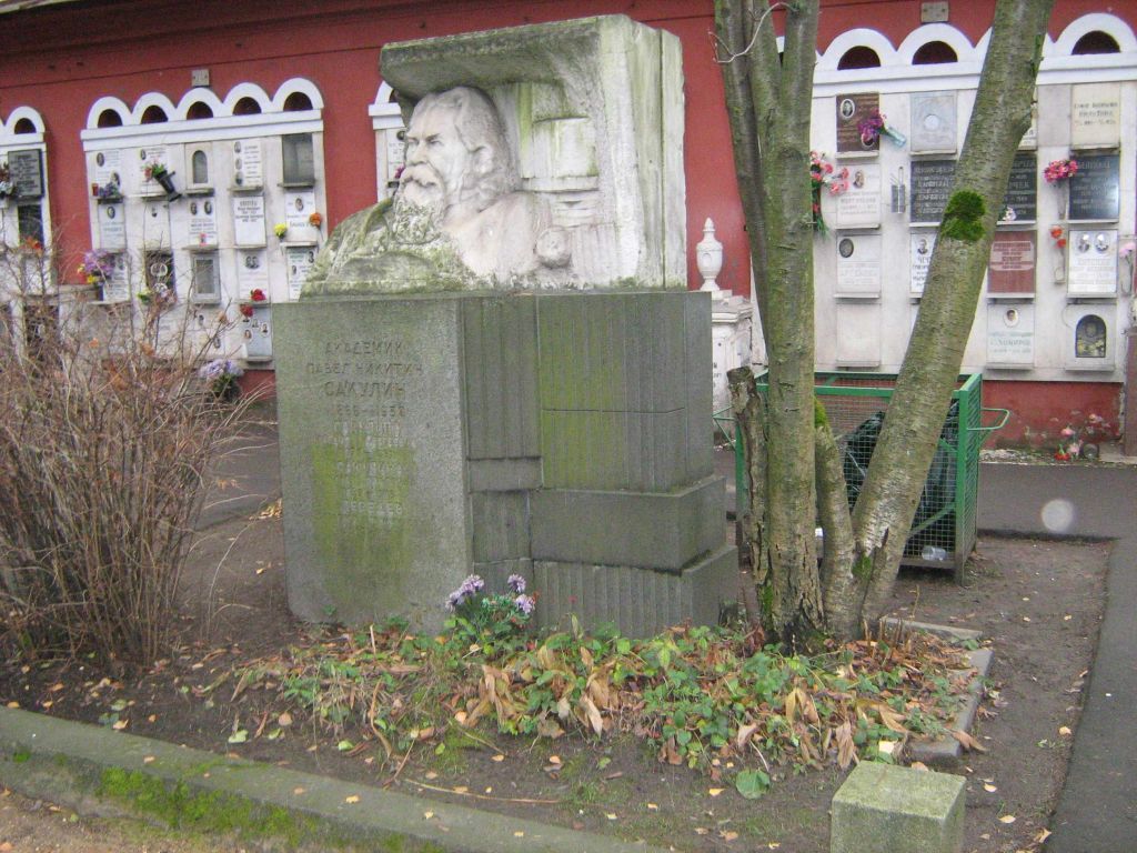 местоположение надгробия 1931–1935 годов, расположенного на \"старой\" территории Новодевичьего кладбища, участок 2, ряд 9 (согласно приложению к настоящему предмету охраны); объемно-пространственная композиция и архитектурно-художественноеоформление надгробия 1931–1935 годов, включая скульптурный портрет – горельеф из белого мрамора, представляющий подгрудное изображение ученого в нише, на фоне стоящих на полках книжных томов; постамент из серого гранита усложненной Г-образной формы в плане, составленный из нескольких блоков различной величины с гладкой или фактурной поверхностью, основание из выступающих блоков розового гранита, в том числе габариты и высотные отметки (согласно приложению к настоящему предмету охраны);конструкция, материал (белый мрамор, серый и розовый гранит), характер и виды обработки поверхностей (шлифовка, резьба, гравировка); шрифтовая композиция на лицевой стороне постамента в левой части под портретом с памятными надписями: \"АКАДЕМИК ПАВЕЛ НИКИТИЧ САКУЛИН 1/XI 1868 –7/IX 1930 САКУЛИНА КЛАВДИЯ СЕРГЕЕВНА 1875 – 1951 САКУЛИНА НИНА ПАВЛОВНА 1898 – 1975 ЛЕБЕДЕВ ВСЕВОЛОД ВЛАДИМИРОВИЧ 1902 – 1937 ГАНЕШИН КИРИЛЛ ВЛАДИМИРОВИЧ 1926 – 2020\", включая технику нанесения (контррельеф), характер и покрытие шрифта, колористическое решение (согласно приложению к настоящему предмету охраны).Изменение предмета охраны может быть осуществлено в порядке и случаях, предусмотренных законодательством об объектах культурного наследия.