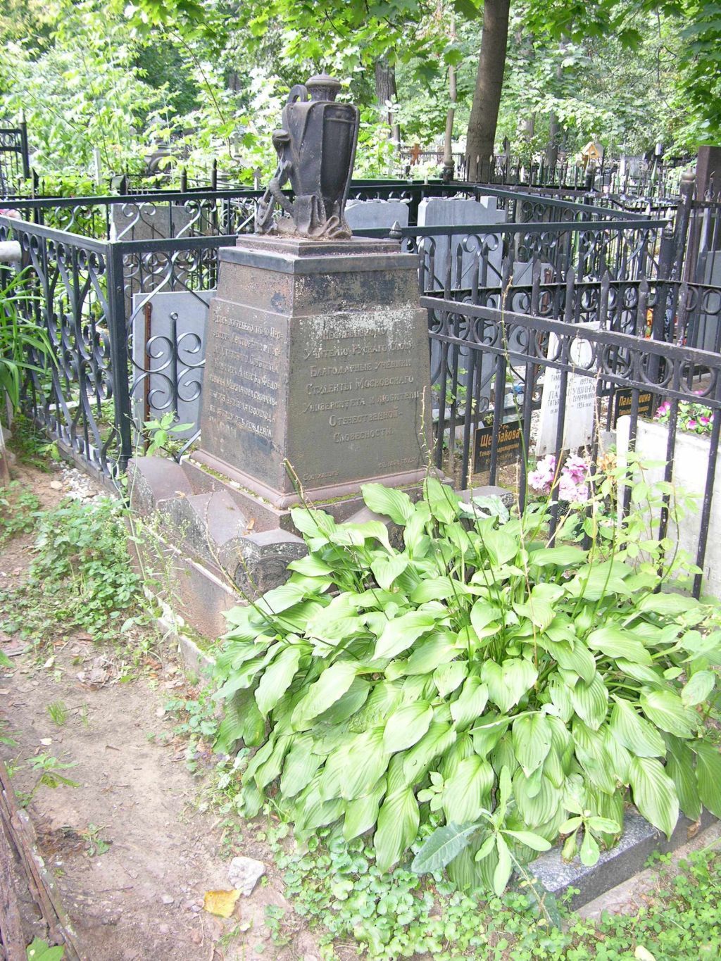 местоположение могилы с надгробием 1839 года, расположеннойв восточной части Ваганьковского кладбища, на участке № 2 (согласно схеме предмета охраны);объемно-пространственная композиция и архитектурно-художественное оформление памятника 1839 года, включая прямоугольное основание-подиум с зубцами по верхней плоскости, украшенными на углах рельефными маскаронами, постамент в виде усеченной пирамиды с цоколем и профилем на стыке, рельефное изображение скрещенных и перевитых лентами жезлов на тыльной стороне, античная урна на плинте в завершении, задрапированная лентами, с лирой и обвивающей ее змеей у подножия, цветник из гранитного бортового камня (согласно схеме предмета охраны), в том числе габариты и высотные отметки;конструкция, материал (чугун), характер и виды обработки поверхностей (литье), колористическое решение;шрифтовые композиции на постаменте памятника с памятными надписями, на лицевой восточной грани: \"Незабвенному Учителю Рускаго СловаБлагодарные ученики Студенты Московскаго Университета и любителиОтечественной ~Словесности. Сооруженъ въ 1839 году\",на боковой южной грани:\"Здљсь погребено тљло Про=фессора Краснорѣчiя и Пое=зiи, Статскаго Совѣтникаи Кавалера Алексѣя Федо=ровича Мерзлякова, скончав=шагося 26го iюля 1830го годана 53 году отъ рожденiя\",на боковой северной грани:\"Отъемлеши духъ ихъ, и исчезнутъ, и въ перстьсвою возвратятся Послеши духа Твоего и созиждутся.\",включая технику нанесения (рельеф), вид и характер шрифта (согласно схеме предмета охраны).Изменение предмета охраны может быть осуществлено в порядкеи случаях, предусмотренных законодательством об объектах культурного наследия.