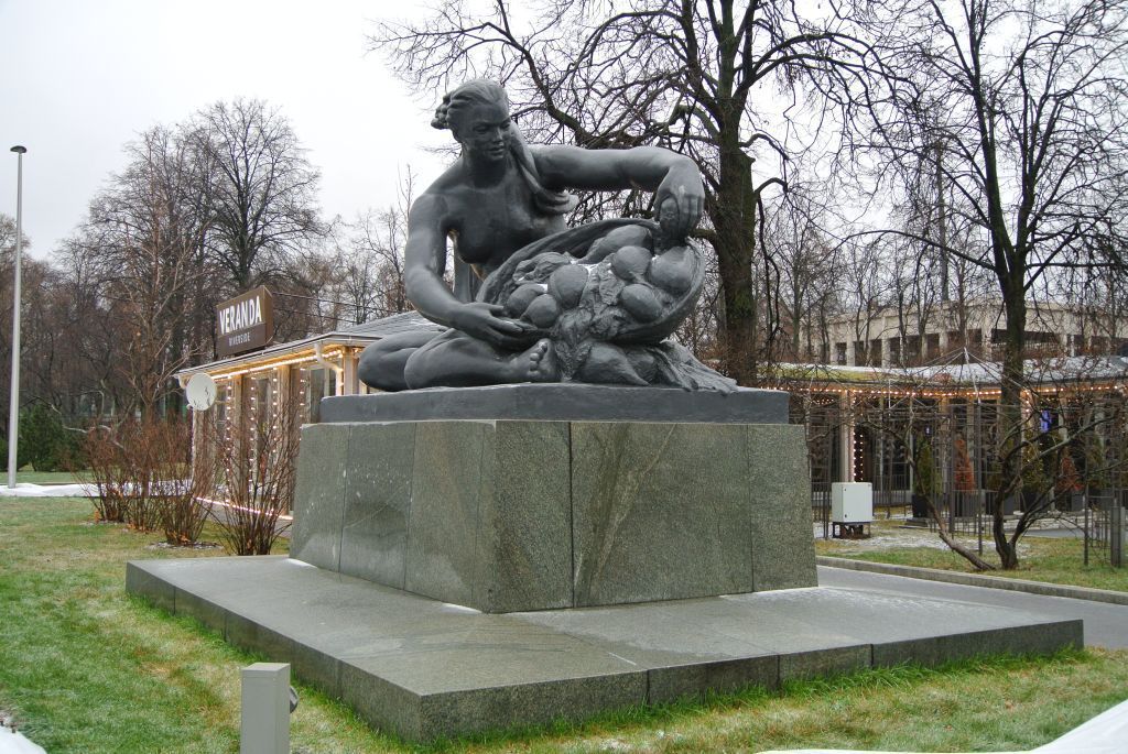 местоположение и градостроительные характеристики сооружения, участвующего в формировании застройки Лужнецкой набережной, его роль в композиционно-планировочной структуре квартала (согласно схеме предмета охраны); объемно-пространственная композиция сооружения, включающая однофигурную скульптуру на плинте, постамент в форме усеченной пирамиды прямоугольный в плане, имеющий форму трапеции, основание конвертной формы, в том числе габариты и высотные отметки (согласно схеме предмета охраны);архитектурно-художественное решение сооружения, изображающее девушку, придерживающую правой рукой наклоненную вперед корзину с овощами и фруктами, левой – плод (согласно схеме предмета охраны);материал, техника исполнения, особенности обработки поверхности и колористическое решение сооружения: цинково-алюминиевый медный сплав, литье, окраска с графитовым наполнителем, постамент и стилобат из светло-серого полированного гранита;надпись прорезными буквами на левой стороне плинта: \"ПО ЭСКИЗУ НАРОДНОГО ХУДОЖНИКА/ С.С.С.Р В.И. МУХИНОЙ СОЗДАЛА МОДЕЛЬ/ И ВЫПОЛНИЛА В НАСТОЯЩЕМ РАЗМЕРЕ/ СК. З.Г. ИВАНОВА ОТЛ. БРИГ МАСТЕРА ХУДОЖНИКА/ В.В. ЛУКЬЯНОВА/ ГЛАВМОСПРОМСТРОЙМАТЕРИАЛЫ ДОК №3/ МОСКВА 1964 Г.\".Изменение предмета охраны может быть осуществлено в порядке и случаях, предусмотренных законодательством об объектах культурного наследия.