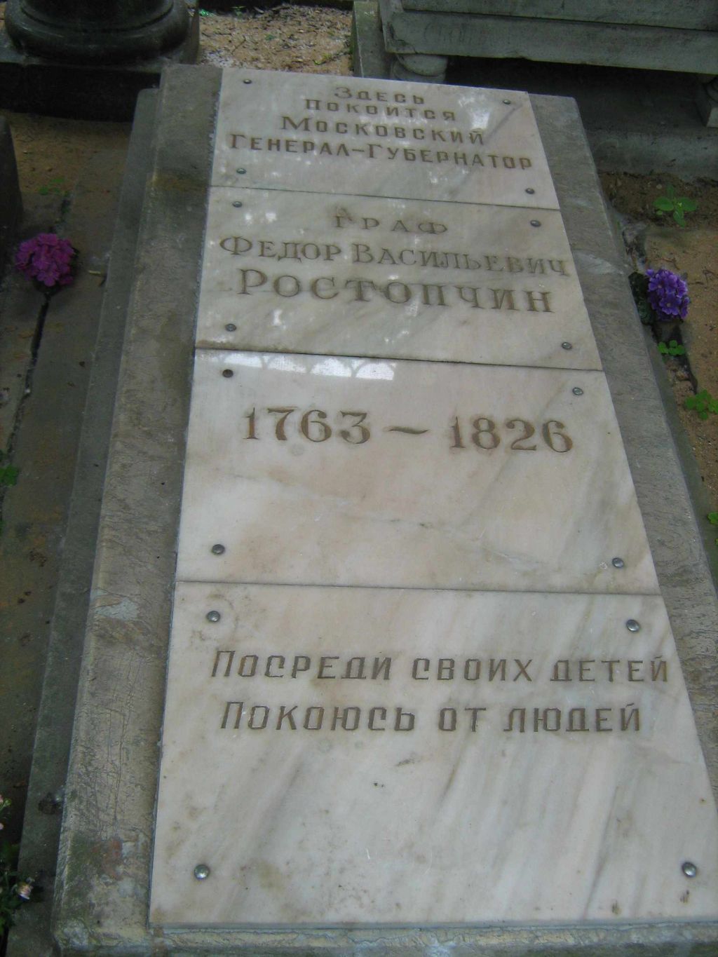 Могила Ростопчина Федора Васильевича (1763-1826), генерал-губернатора Москвы, современника А.С.Пушкина