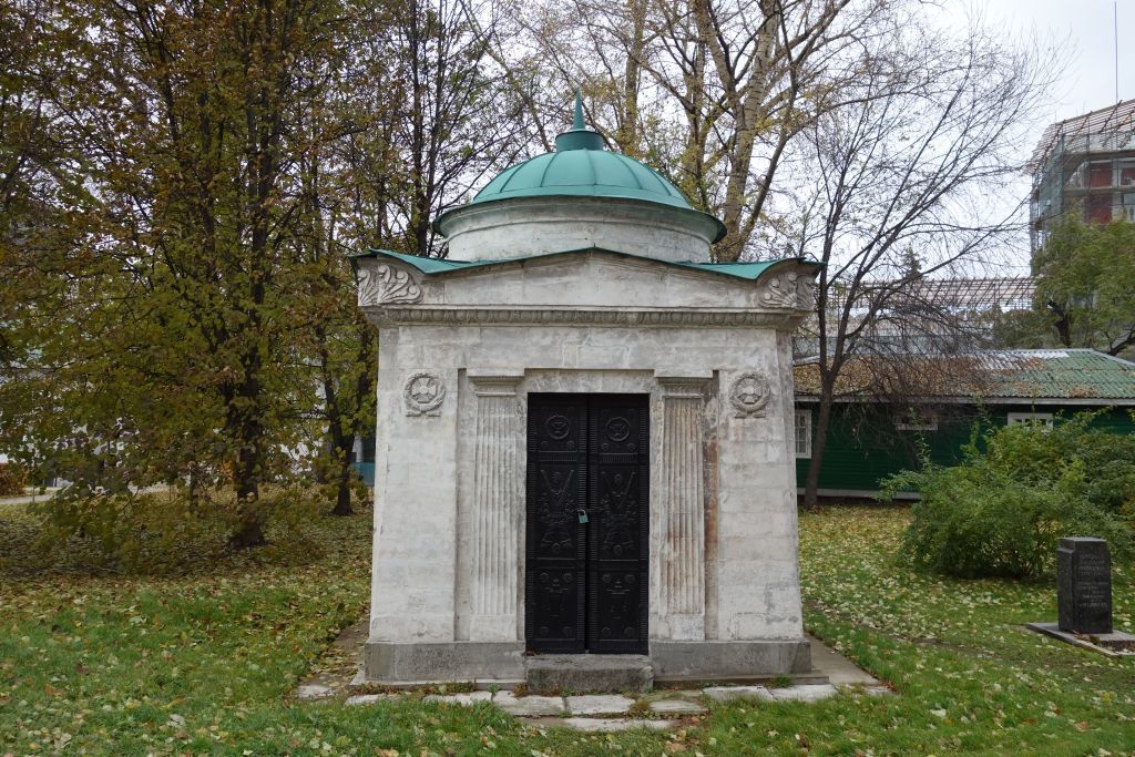 Местоположение здания и его роль в композиционно-планировочной структуре ансамбля застройки Новодевичьего монастыря.Объемно-пространственная композиция, представляющая собой кубический мавзолей на невысоком цоколе, завершенный плоским куполом, включая высотные отметки по венчающему карнизу и зениту купола.Композиция и архитектурно-художественное оформление фасадов 1830-х гг., включая двухпилястровые портики, завершенные плоскими треугольными фронтонами и угловыми акротериями; местоположение полуциркульных оконных проемов и прямоугольного дверного.Материал и характер отделки фасадных поверхностей: белый камень, резные белокаменные рельефы и архитектурные детали.Колористическое решение фасадов 1830-х гг. (уточняется в процессе реставрации).Двупольная чугунная дверь входа, расположенная на восточном фасаде.Кованная решетка на полуциркульных оконных проемах.Пространственно-планировочная структура в пределах капитальных стен, состоящая из перекрытого куполом кубического объема и подземного склепа с нишами для захоронений под ним.Архитектурно-художественное оформление интерьера: вспарушенный свод на четырех узких арках, тонкие угловые пилоны, искусственный белый мрамор откосов двери, окон и подоконников