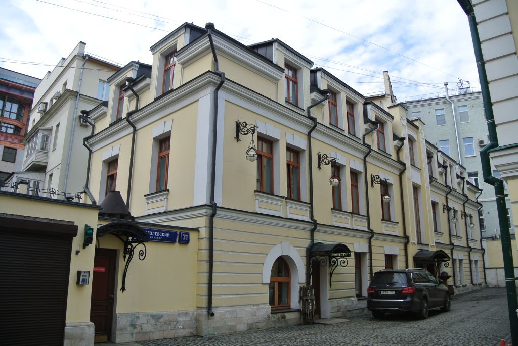 Доходный дом, 1909 г., архитектор Д.М.Челищев. Здесь в кв. № 9 жил писатель А.Белый (Б.Н.Бугаев), в 1910-1916 гг. в доме располагалось руководимое им издательство "Мусагет"