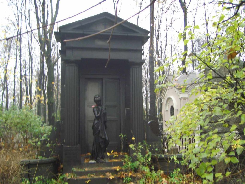 местоположение надгробия 1910-х годов на семейном захоронении Пло, расположенного на участке № 13 Введенского кладбища (согласно приложению к настоящему предмету охраны);объемно-пространственная композиция и архитектурно-художественное решение надгробия 1910-х годов, в том числе портал из блоков, две каннелированные колонны, антаблемент с треугольным фронтоном, крест-инкрустация в тимпане, лестница, филенчатая двупольная дверь, скульптура женщины, ее конструкция, в том числе детали крепежа, надгробная плита с фаской по верхней грани на основании, парапеты в четверть круга с филенками и профилированным карнизом по флангам, ограждение участка захоронения в виде подпорной стенки из блоков с цоколем, две ступени с закругленными углами, включая габариты и высотные отметки сооружения (согласно приложению к настоящему предмету охраны);конструкция, материал (бронза, светло-серый, серый, черный гранит, кирпич), характер (фактура) и виды обработки поверхностей (полировка, шлифовка, гравировка, бронзовое литье), колористическое решение 1910-х годов;шрифтовая композиция: \"À nos parents regrettés LEON PLAUT 1853 – 1905 SOPHIE PLAUT 1859 – 1905\" на пьедестале левой колонны, клеймо изготовителя с надписью: \"ОТЛИВАЛЪ К. J. МИГЛИНИКЪ\" в овальной рамке на скульптуре женщины, включая их технику нанесения (невысокий рельеф), характер шрифта (гладкие темные буквы на светлом шероховатом фоне) колористическое решение (согласно приложению к настоящему предмету охраны).Изменение предмета охраны может быть осуществлено в порядке и случаях, предусмотренных законодательством об объектах культурного наследия.