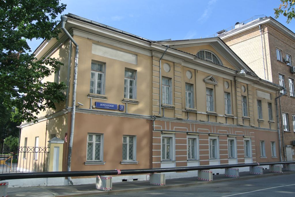 местоположение и градостроительные характеристики здания конца XVIII – начала XIX века, 1843–1844 годов, 1871 года, участвующего в формировании застройки Делегатской улицы, его роль в композиционно-планировочной структуре ансамбля и квартала (согласно схеме предмета охраны);объемно-пространственная композиция двухэтажного, Т-образной формы в плане здания конца XVIII – начала XIX века, с дворовой пристройкой 1843–1844 годов, переходом в уровне второго этажа на открытой аркаде и одноэтажным тамбуром парадного входа 1871 года, в том числе высотные отметки по венчающему карнизу и фронтону (согласно схеме предмета охраны);крыша XIX века, ее конфигурация, материал, характер кровельного покрытия, высотные отметки по коньку, включая слуховые окна;композиционное решение и архитектурно-художественное оформление фасадов конца XVIII–XIX веков, включая размер, форму, местоположение и оформление оконных и дверных проемов, белокаменный цоколь, слабо выступающий ризалит главного фасада с рустованным первым этажом и парными рустованными лопатками во втором, креповка и пилястра тосканского ордера застроенного портика дворового фасада, в том числе прямоугольные ниши, рустованные замки и подоконные полочки оконных проемов, круглые ниши-медальоны и \"лежачие\" ниши-филенки второго этажа, междуэтажный карниз, венчающий профилированный карниз с гладким фризом, фронтон ризалита с полукруглым окном в тимпане (согласно схеме предмета охраны); столярные заполнения оконных и дверных проемов конца XVIII–XIX веков, включая материал, характер оформления, колористическое решение;материал и характер отделки фасадных поверхностей конца XVIII–XIX веков: белокаменный цоколь, кирпичный руст, гладкая штукатурка с окраской;колористическое решение фасадов конца XVIII–XIX веков (уточняется в процессе реставрационных исследований);пространственно-планировочная структура интерьеров здания в пределах капитальных стен и перекрытий конца XVIII–XIX веков (согласно схеме предмета охраны);капитальные стены и перекрытия конца XVIII–XIX веков, их конструкция и материал;местоположение лестниц конца XVIII–XIX веков;архитектурно-художественное оформление интерьеров конца XVIII–XIX веков, включая профилированные карнизы потолков (уточняется в процессе реставрационных исследований).Изменение предмета охраны может быть осуществлено в порядке и случаях, предусмотренных законодательством об объектах культурного наследия.