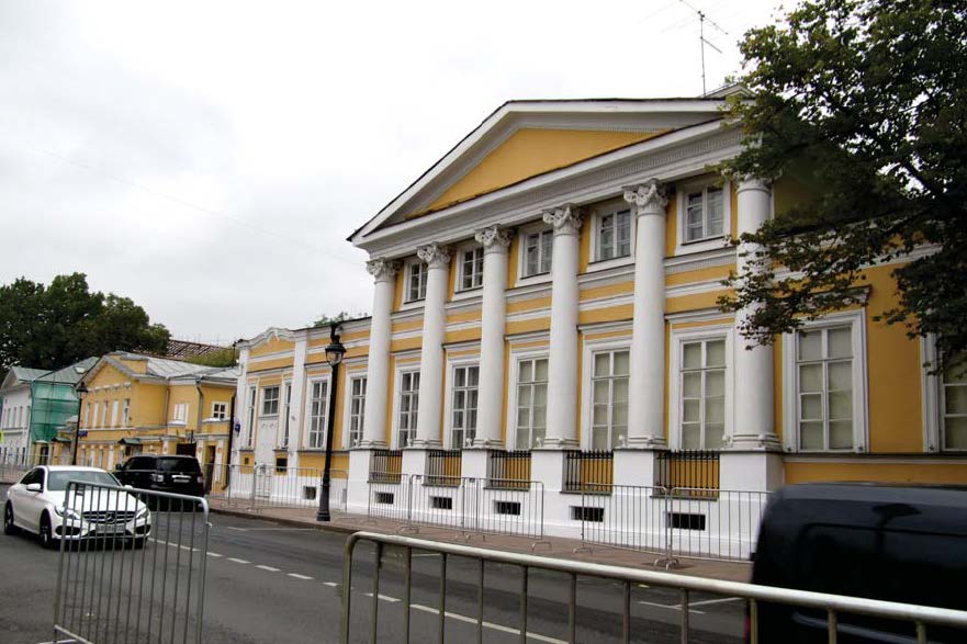 Ансамбль: местоположение и градостроительные характеристики ансамбля XIX века, участвующего в формировании фронта застройки Никитской улицы, его роль в композиционно-планировочной структуре квартала (согласно схеме предмета охраны);объемно-пространственная композиция ансамбля XIX века, включая силуэтные характеристики, габариты и высотные отметки зданий и ограды (согласно схеме предмета охраны);пространственно-планировочная структура ансамбля усадьбы XIX века, включая соотношение застроенных и незастроенных пространств, местоположение зданий и ограды, габариты и высотные отметки;ограда с пилонами ворот XIX века между строениями 2 и 3, их местоположение, композиционное решение и архитектурно-художественное оформление, конструкция, материал, в том числе калитка, звенья каменной ограды с металлической решеткой (с учетом реставрационных работ 1978–1984 годов; согласно схеме предмета охраны).1.\"Главный дом\" (1-я пол. XIX в.) (г. Москва, ул. Большая Никитская, д. 44, стр. 2):местоположение и градостроительные характеристики здания, участвующего в формировании застройки Большой Никитской улицы, его роль в композиционно-планировочной структуре ансамбля (согласно схеме предмета охраны); объемно-пространственная композиция двухэтажного, деревянного, с каменным подвалом, антресолями и мезонином здания 1-й половины ХIХ века, в том числе высотные отметки по венчающим карнизам, аттику и фронтону (согласно схеме предмета охраны);крыша ХIХ века, ее конструкция, конфигурация, высотные отметки по конькам, материал и характер кровельного покрытия (уточняется в процессе реставрационных исследований);композиционное решение и архитектурно-художественное оформление фасадов 1-й половины ХIХ века, в том числе местоположение, форма, размер и оформление оконных и дверных проемов, рамочные профилированные наличники с сандриками, портик большого ордера с шестью трехчетвертными колоннами с композитными капителями и с базами, два фронтона с гладкими тимпанами, пилястры, междуэтажный и венчающие карнизы, козырек северного фасада, пять звеньев подоконных металлических решеток в портике (с учетом реставрационных работ XX века, согласно схеме предмета охраны);материал и характер отделки фасадных поверхностей ХIХ века, включая белокаменные детали и цоколь (уточняется в процессе реставрационных исследований);колористическое решение фасадов ХIХ века (уточняется в процессе реставрационных исследований);пространственно-планировочная структура интерьеров здания в пределах капитальных стен, перекрытий, перегородок конца XIX века (согласно схеме предмета охраны);капитальные стены, перегородки и перекрытия конца ХIХ века, их конструкция и материал, в том числе сводчатые перекрытия подвала (согласно схеме предмета охраны);лестницы XIX века, их местоположение, материал, конструкция, декоративное оформление, в том числе ограждения из круглых балясин с деревянными профилированными перилами (согласно схеме предмета охраны);архитектурно-художественное оформление интерьеров XIX века, в том числе паркеты, лепные плафоны, розетки, кронштейны, профилированные карнизы, тяги (уточняется в процессе реставрационных исследований; согласно схеме предмета охраны);колористическое решение интерьеров (уточняется в процессе реставрационных исследований); печи и камины XIX века, их 