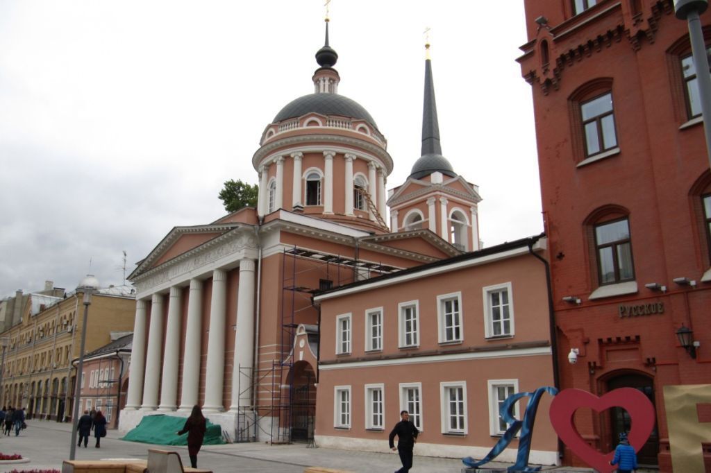 местоположение и градостроительные характеристики здания церкви с колокольней 1825–1827 годов, участвующего в формировании фронта застройки Новой площади, его роль в композиционно-планировочной структуре ансамбля (согласно схеме предмета охраны); объемно-пространственная композиция здания церкви 1825–1827 годов, с подвалом в виде одностолпной палаты, двухъярусный четверик под четырехскатной кровлей, увенчанный ротондой и перекрытый сферическим куполом, а также шестиколонный портик, фронтоны, квадратная в плане, четырехъярусная (верхний сквозной ярус звона) колокольня (согласно схеме предмета охраны), в том числе высотные отметки по венчающим карнизам, барабанам и подкрестовому яблоку; крыши, купол, главка, шпили, кресты 1825–1827 годов, их конфигурация, материал, характер кровельного покрытия и колористическое решение, высотные отметки по конькам (с учетом реставрационных работ 2010-х годов); композиционное решение и архитектурно-художественное оформление фасадов 1825–1827 годов, включая местоположение, форму, размер, оформление оконных и дверных проемов, полуциркульное завершение окон ротонды и открытого яруса колокольни с архивольтами, ниши, подоконные полочки с кронштейнами, ленточный руст, веерные замковые камни, филенки, пилястры, фронтоны, шестиколонный портик главного восточного фасада на белокаменном цоколе, завершенный треугольным фронтоном, фриз фронтона с лепным орнаментом и надписью в центре \"1825 года\", четырехпилястровые портики на северном и южном боковых фасадах, завершенные в центре треугольными фронтонами, антаблемент четверика с профилированным архитравом, гладким фризом и карнизом, межъярусные тяги, полуколонны ионического ордера ротонды, балясник, венчающий карниз (с учетом реставрационных работ 2010-х годов; согласно схеме предмета охраны); материал и характер отделки фасадных поверхностей 1825–1827 годов, в том числе белокаменный цоколь и детали, руст, штукатурка по кирпичной кладке (с учетом реставрационных работ 2010-х годов); колористическое решение фасадов 1825–1827 годов (уточняется в процессе реставрационных исследований); пространственно-планировочная структура интерьеров здания церкви с колокольней в пределах капитальных стен, опорных конструкций и перекрытий 1825–1827 годов, в том числе цилиндрический свод в помещениях подвала, сомкнутый свод с фигурными лопатками в первом ярусе церкви, цилиндрические своды с распалубками над окнами пространственных ячеек вдоль стен первого яруса, цилиндрические и коробовые своды во втором ярусе (согласно схеме предмета охраны); капитальные стены, опорные конструкции и перекрытия 1825–1827 годов, в том числе сводчатые, их конструкция и материал (согласно схеме предмета охраны); лестницы 1825–1827 годов, их местоположение, конструкция, материал и декоративное оформление (согласно схеме предмета охраны); архитектурно-художественное оформление интерьеров 1825–1827 годов, в том числе перспективный портал, связывающий вестибюль с помещением первого яруса церкви, лепные декоративные пояски распалубок и ребер сводов, оформление оконных проемов второго яруса, нервюры, орнаментальные тяги, профилированные карнизы (уточняется в процессе реставрационных исследований); колористическое решение интерьеров 1825–1827 годов (уточняется в процессе реставрационных исследований); столярн