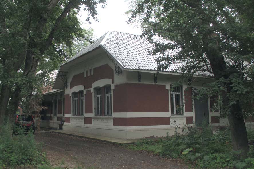 местоположение и градостроительные характеристики здания, его роль в композиционно-планировочной структуре ансамбля;объемно-пространственная композиция одноэтажного здания с двумя боковыми ризалитами 1903-1908 годов, высотные отметки по венчающим карнизам;крыша 1903-1908 годов, ее конфигурация, характер кровельного покрытия, деревянная подшивка, металлические фигурные кронштейны, печные трубы, высотные отметки по конькам;архитектурно-художественное оформление фасадов 1903-1908 годов, включая местоположение, форму, размер, оформление оконных и дверных проемов, наличники, штукатурные фризы, профилированный и венчающий карниз, три арочные ниши с замковыми камнями в тимпане ризалита, центральная входная группа с крыльцом, оформленным восьмигранной колонной на кубическом постаменте, наличником с веерным рустом и замковым камнем и ложным окном \"бычий глаз\", металлические фигурные кронштейны и зонты над входами;материал и характер отделки фасадных поверхностей здания 1903-1908 годов (кирпичная кладка, штукатурный декор, метлахская плитка);колористическое решение фасадов 1903-1908 годов;пространственно-планировочная композиция здания в пределах капитальных стен и перекрытий 1903-1908 годов;капитальные стены и перекрытия 1903-1908 годов, их конструкция и материал;столярные оконные заполнения 1903-1908 годов, их материал, характер оформления и колористическое решение.