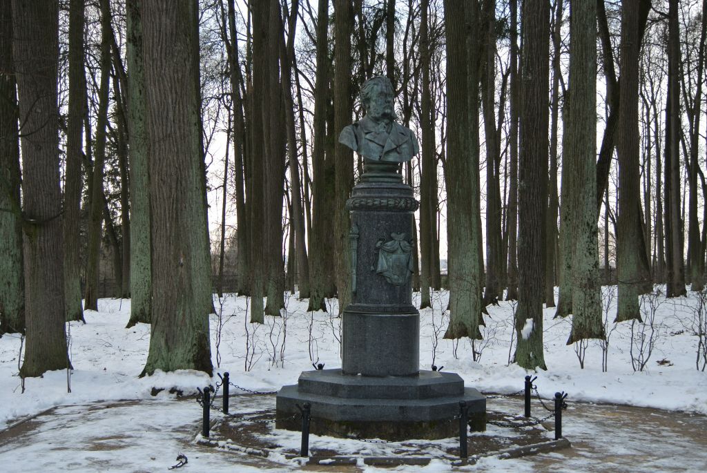 местоположение памятника П.П.Вяземскому 1916 года в парке усадьбы \"Остафьево\" (Вяземских) (согласно приложению к настоящему предмету охраны); планировочная структура памятника: площадка, дорожка и цветники; объемно-пространственная композиция и архитектурно-художественное оформление памятника П.П.Вяземскому 1916 года, представляющего собой бронзовый бюст с двухуровневым валом на постаменте из голубого лабрадорита в форме круглой усеченной колонны, стоящий на восьмигранном ступенчатом основании, с чеканным бронзовым поясом в виде растительного орнамента на двухступенчатом восьмиконечном цоколе колонны, бронзовым лавровым венком, включая бронзовый герб князей Вяземских на лицевой стороне, и двумя бронзовыми горельефами в виде горящих факелов по бокам постамента, в том числе габариты и высотные отметки (согласно приложению к настоящему предмету охраны); конструкция, материал (бронза, лабрадорит), характер и виды обработки поверхностей (литье, полировка, гравировка); шрифтовая композиция: \"князю Павлу Петровичу ВЯЗЕМСКОМУ основателю Общества Любителей Древней Письменности\" (на задней стороне постамента), включая технику нанесения (накладные буквы, контррельеф), характер и оформление шрифта, колористическое решение (согласно приложению к настоящему предмету охраны).Изменение предмета охраны может быть осуществлено в порядке и случаях, предусмотренных законодательством об объектах культурного наследия.