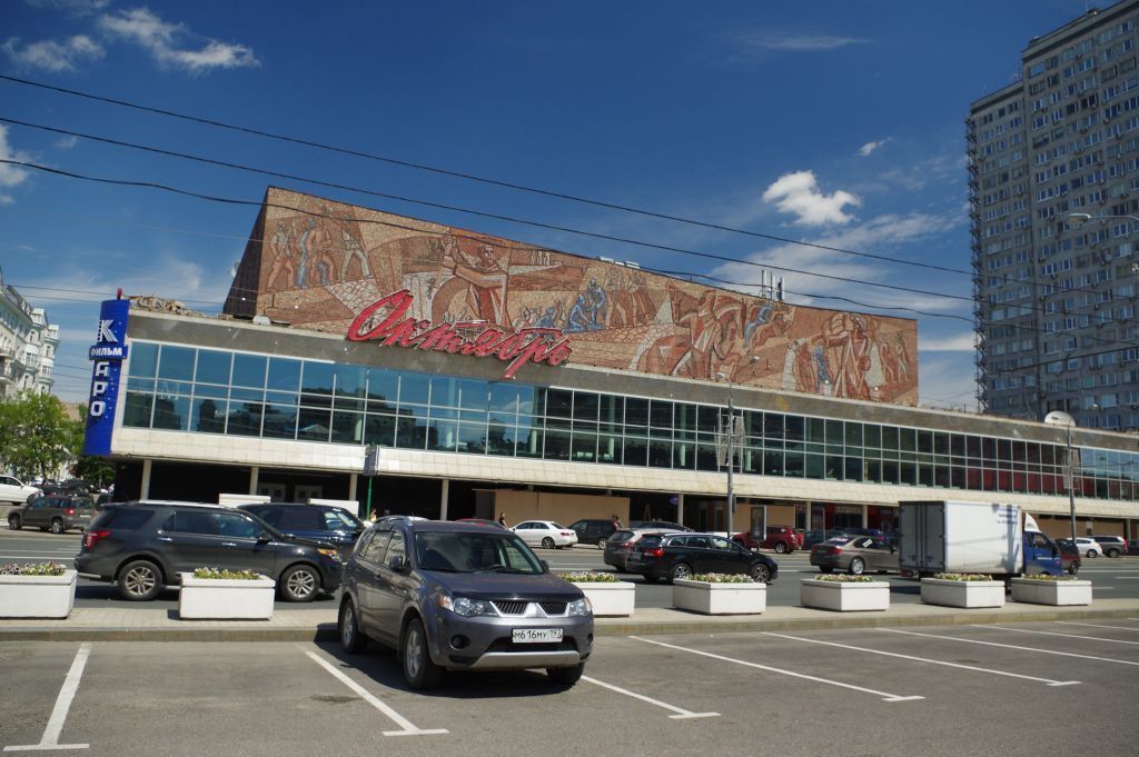 местоположение мозаичного панно на четырех фасадах кинотеатра \"Октябрь\" – структурного элемента застройки улицы Новый Арбат;композиция мозаичного панно 1967 года, состоящая из четырех тематических циклов: революция, гражданская война, послевоенное мирное строительство, покорение космоса и композиции с серпом и молотом и фанфарами, размещенных на четырех фасадах в виде сплошного широкого пояса;размеры мозаичного панно, соответствующие размерам верхних глухих фасадных плоскостей здания;материал мозаичного панно 1967 года, в том числе цветная смальта, фактура и текстура мозаичной поверхности: стеклянно-глянцевая и матовая;техника исполнения и колористическое решение мозаичного панно.Предмет охраны может быть уточнен при проведении натурных реставрационных исследований.