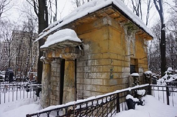местоположение сооружения 1830-х годов, его роль в структуре Введенского кладбища XIX – начала XX века (согласно схеме предмета охраны);объемно-пространственная композиция прямоугольного в плане сооружения 1830-х годов, включающего одноэтажный объем с двухколонными портиками с четырех сторон (согласно схеме предмета охраны), в том числе высотные отметки по карнизам;крыша на XIX век, ее конфигурация, характер и материал кровельного покрытия, в том числе высотные отметки по конькам (уточняется в процессе реставрационных исследований);композиционное решение и архитектурно-художественное оформление фасадов 1830-х годов, включая местоположение, размер, форму и оформление дверного проема, в том числе руст, ниши, двухколонные тосканские портики, антаблемент, венчающий карниз с модульонами, гладкий фриз с валиком (уточняется в процессе реставрационных исследований) (согласно схеме предмета охраны);материал и характер отделки фасадных поверхностей 1830-х годов, в том числе окраска по камню, руст (уточняется в процессе реставрационных исследований);колористическое решение фасадов 1830-х годов (уточняется в процессе реставрационных исследований);пространственно-планировочная структура сооружения в пределах капитальных стен и сводчатого перекрытия 1830-х годов (согласно схеме предмета охраны);капитальные стены и сводчатое перекрытие 1830-х годов, их конструкции и материал, мощение пола каменными плитами (согласно схеме предмета охраны);надгробная плита в полу из темного камня с надписью 1830-х годов \"НАМѢСТѢ СЕМЪ ПОКОЙТСЯ НЕЗАБВЕННЫЙ ПРАХЪ ДѢЙСТВИТЕЛЬНОЙ ТАЙНОЙ СОВЕТНИЦЫ И КОВАЛЕРСТВЕННОЙ ДАМЫ ГРАФИНИ ЕЛИЗАВЕТЫ ФЕДОРОВНЫ МУСИНОЙ ПУШКИНОЙ УРОЖДЕННОЙ ГРАФИНИ ФОНЪ ВАРТЕНСЛЕБЕНЪ РОДИВШЕЙСЯ ВЪ 1759 ГОДУ СКОНЧАЛАСЬ ВЪ 1835 ГОДУ АВГУСТА МЕСЯЦА 27 ЧИСЛА ЖИЗНИ ЕЕ БЫЛО 76 ЛѢТЪ\" и изображением \"адамовой головы\", включая ее местоположение, материал (металл), характер оформления (согласно схеме предмета охраны);художественный металл: памятная доска 1830-х годов из черного металла, расположенная в нише северо-восточного фасада, с надписью: \"Hier ruhet die Wirklich Geheime Räthinn und Ordens-Dame Gräfinn Scharlotte, Amalia, Isabella Mussin Puschkin, gebohrene Gräfinn fon Wartensleben Gebohren im Jahre 1759 den 7 Marz gestorben im Jahre 1835 den 27 August Ruhe in Friede!\" (согласно схеме предмета охраны); одностворчатая дверь с гербом рода Мусиных-Пушкиных, декорированная филенками, плинтусом, узорными орнаментами (розетками с крестами, венками с лентами, звездами, меандровым орнаментом), с памятной надписью (уточняется в процессе реставрационных исследований).Изменение предмета охраны может быть осуществлено в порядке и случаях, предусмотренных законодательством об объектах культурного наследия.