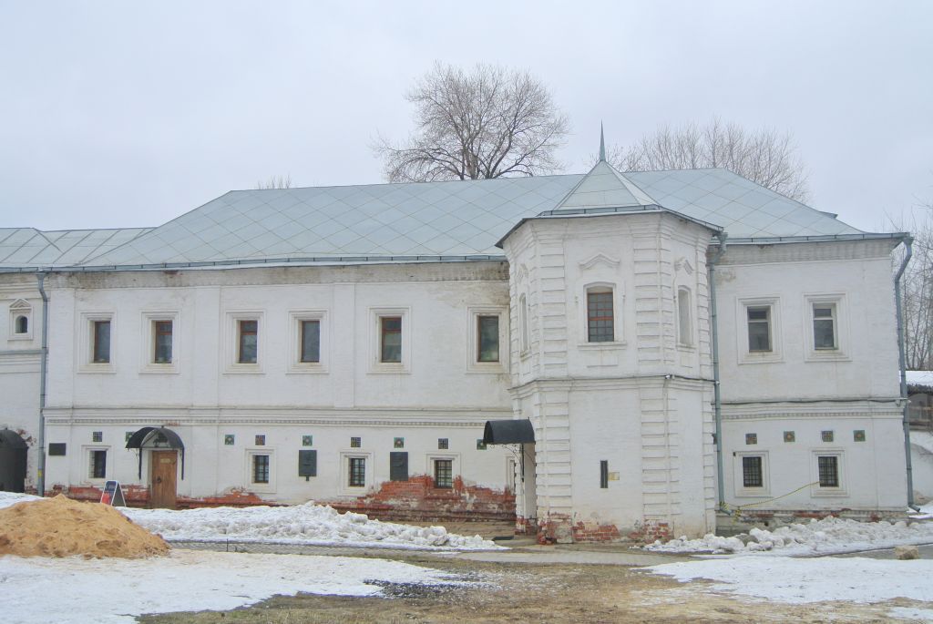 местоположение и Градостроительные характеристики здания 1670 года, конца XVIII века, его роль в пространственно-планировочной структуре ансамбля Андроникова монастыря (согласно схеме предмета охраны);объемно-пространственная композиция прямоугольного в плане, двухэтажного здания 1670 года, конца XVIII века, включая пятигранный лестничный ризалит со стороны северного фасада, высотные отметки по венчающим карнизам (с учетом реставрационных работ 1956-1960-х годов;согласно схеме предмета охраны);крыша, ее конструкция, конфигурация, высотные отметки, материал, характер кровельного покрытия (с учетом реставрационных работ 1956-1960-х годов);композиционное решение и архитектурно-художественное оформление фасадов 1670 года, конца XVIII века, включая местоположение, форму, размер, характер оформления, материал оконных и дверных проемов, наличники, гладкие и рустованные лопатки, рельефные цветные изразцы, междуэтажный и венчающий карнизы (с учетом реставрационных работ 1956-1960-х годов; согласно схеме предмета охраны);материал и характер отделки фасадных поверхностей 1670 года, конца XVIII века, в том числе известковая обмазка по кирпичу, цветные изразцы (с учетом реставрационных работ 1956-1960-х годов);колористическое решение фасадов 1670 года, конца XVIII века (уточняется в процессе реставрационных исследований);пространственно-планировочная структура интерьеров здания в пределах капитальных стен, плоских и сводчатых перекрытий 1670 года, конца XVIII века (согласно схеме предмета охраны);капитальные стены и перекрытия 1670 года, конца XVIII века, их конструкция и материал, в том числе кирпичные своды первого этажа (согласно схеме предмета охраны);местоположение лестницы конца XVIII века;архитектурно-художественное оформление интерьеров 1670 года, конца XVIII века, в том числе перспективный портал на втором этаже, белокаменный пол (согласно схеме предмета охраны);колористическое решение интерьеров 1670 года, конца XVIII века (уточняется в процессе реставрационных исследований);металлические решетки оконных проемов первого этажа 1670 года, их материал, техника изготовления, характер оформления.Изменение предмета охраны может быть осуществлено в порядке и случаях, предусмотренных законодательством об объектах культурного наследия.
