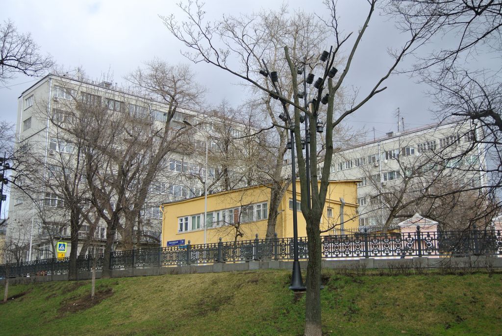 1.Ансамбль:местоположение и градостроительные характеристики ансамбля, участвующего в формировании фронта застройки Гоголевского бульвара и Большого Знаменского переулка, а также его роль в композиционно-планировочной структуре квартала и домовладения;объемно-пространственная композиция ансамбля на 1952 год, в том числе силуэтные характеристики, габариты и высотные отметки зданий;пространственно-планировочная структура ансамбля на 1932 год, включая местоположение зданий, соотношение застроенной и незастроенной территорий, местоположение элементов исторического озеленения (палисадников).2.Жилой корпус \"для семейных\", 1929-1932 годов, архитекторы М.О.Барщ, В.Н.Владимиров, И.Ф.Милинис, С.В.Орловский, А.Л.Пастернак, Л.С.Славина (строение 1):местоположение и градостроительные характеристики здания, участвующего в формировании фронта застройки Большого Знаменского переулка, а также его роль в композиционно-планировочной структуре ансамбля;объемно-пространственная композиция здания 1932-1950-х годов, включая лестнично-лифтовые объемы;конструкция, материал, конфигурация и высотные отметки крыши на 1932 год;композиционное решение фасадов 1932-1950-х годов, включая местоположение, форму, размер и оформление оконных и дверных проемов;колористическое решение фасадов (уточняется в процессе реставрационных исследований);оконные и дверные столярные заполнения со скобяными приборами 1929-1932 годов, 1950-х годов, их материал, характер оформления и колористическое решение;пространственно-планировочная структура интерьеров в пределах капитальных стен, опорных конструкций и перекрытий 1929-1932 годов;материал капитальных стен, опорных конструкций и перекрытий, включая фундаменты алтарной части церкви Ржевской Богоматери 1686 года, включенные в структуру фундаментов существующего строения;лестницы 1929-1932 годов, их местоположение, материал, конструкции и художественное оформление (сплошное ограждение).3.Жилой корпус \"для одиноких\" с общественно-бытовыми предприятиями, 1929-1932 годов, 1949-1952 годов, архитекторы М.О.Барщ, В.Н.Владимиров, И.Ф.Милинис, С.В.Орловский, А.Л.Пастернак, Л.С.Славина ( строение 2):местоположение и градостроительные характеристики здания, участвующего в формировании фронта застройки Гоголевского бульвара, а также его роль в композиционно-планировочной структуре ансамбля (согласно схеме предмета охраны);объемно-пространственная композиция здания на 1932–1952 годы (согласно схеме предмета охраны);конструкция, материал, конфигурация и высотные отметки крыши на 1932–1952 годы;композиционное решение фасадов на 1932 год, 1952 год, включая местоположение, форму, размер и оформление оконных и дверных проемов, открытые балконы с металлическим ограждением (согласно схеме предмета охраны);колористическое решение фасадов (уточняется в процессе реставрационных исследований);характер оформления и колористическое решение оконных и дверных заполнений на 1952 год (уточняется в процессе реставрационных исследований);пространственно-планировочная структура интерьеров в пределах капитальных стен, перегородок, опорных конструкций и перекрытий 1890 года, 1929–1932 годов, 1952 года, включая двухуровневые квартиры (согласно схеме предмета охраны);материал капитальных стен и опорных конструкций 1929–1932 годов, 1952 года, а также сохранившихся фрагментов стен подклета трап