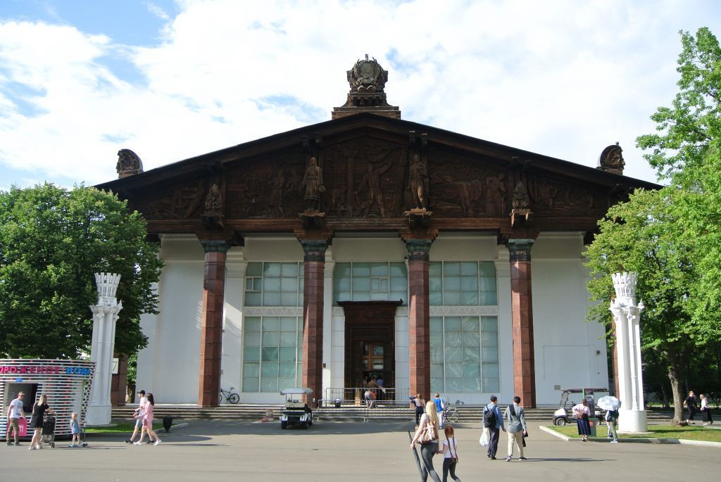 Градостроительные характеристики- Местоположение на территории ВВЦ- Композиционная значимость (роль) в структуре ландшафта ВВЦ и окрестностей- Габариты, силуэт на 1954 г.- Секторы и направления видовых раскрытий, визуальные связи памятника.Архитектурные н конструктивные характеристики- Объемно-пространственная композиция на 1954 г. (историческая конфигурация здания; высотные характеристики, этажность);- Конфигурация завершения на 1954 г.; конструкция, материал и характер кровельного покрытия;- Композиция и архитектурно-художественное оформление фасадов на 1954 г.; местоположение, форма, размеры оконных и дверных проёмов, их оформление, материал, техника исполнения;- Виды отделки фасадной поверхности на 1954 г.;- Колористическое решение на 1954 г.;- Характер заполнения дверных и оконных проёмов и его сохранившиеся ценные элементы и сопутствующие им детали на 1954 г.;- Пространственно-планировочная структура интерьеров на 1954 г.; трёхмерные характеристики на 1954 г.; особенности планировочных связей помещений;- Материал, конструкции, техника исполнения конструктивных элементов на 1954 г.;Пространственное и конструктивное решение, архитектурно-художественное оформление, материал, техника исполнения лестниц на 1954 г.; сохранившиеся исторические лестницы.Архитектурно-художественное оформление интерьеров на 1954 г.:- вид, материал и вид обработки, цвет покрытия полов на 1954 г., сохранившиеся ценные элементы полов;- декоративное оформление стен на 1954 г.;- декоративное оформление, материал, фактура, техника исполнения, колористическое решение перекрытий.Исторически ценное функциональное назначение - экспозиционное.