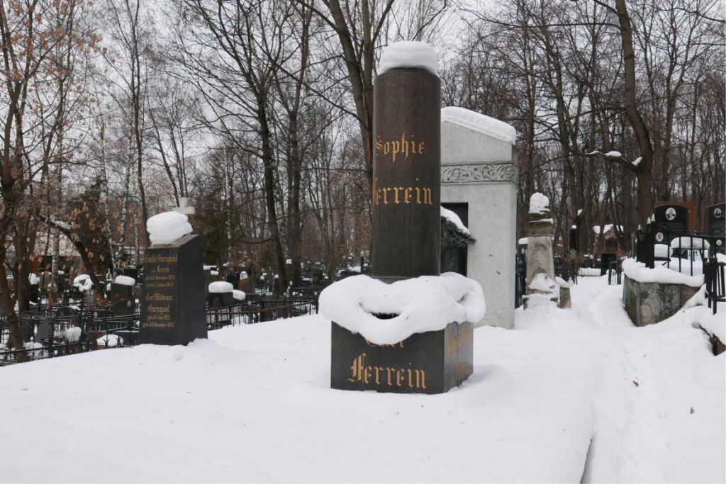 1.Ансамбль:местоположение семейного захоронения Феррейнов с надгробиями 2-й пол. XIX в. – нач. ХХ в., в южной части Введенского кладбища на участке № 5-1 (согласно приложению к настоящему предмету охраны); объемно-пространственная композиция семейного захоронения Феррейнов с шестью надгробиями 2-й пол. XIX в. – нач. ХХ в., установленными в три ряда по оси запад-восток (согласно приложению к настоящему предмету охраны), включая их местоположение, конструкцию, материал, габариты и высотные отметки;ограждение по периметру участка семейного захоронения Феррейнов 2-й пол. XIX в. – нач. ХХ в. в виде борта-подпорной стенки из серого гранита с гранеными угловыми блоками, включая габариты, высотные отметки сооружения, а также конструкцию, материал, фактуру поверхностей и колористическое решение.2. Памятник \"Надгробие Феррейна Карла Ивановича (1802–1877 гг.), фармацевта, основателя фирмы \"Феррейн\" (1802–1877 гг.) (г. Москва, Наличная ул., д. 1, Введенское кладбище, уч. 5):местоположение надгробия конца XIX в. на могиле Феррейна Карла Ивановича (1802–1887 гг.), фармацевта, основателя фирмы \"Феррейн\", на семейном захоронении Феррейнов, на участке № 5-1, в среднем ряду у восточной границы (согласно приложению к настоящему предмету охраны);объемно-пространственная композиция и архитектурно-художественное решение надгробия конца XIX в. на могиле Феррейна Карла Ивановича (1802–1887 гг.), представляющего выполненную из темно-розового тонко шлифованного гранита усеченную колонну с профилированной базой на кубоватом постаменте с фаской по верхней грани из того же камня, включая плиту-основание из песчаника (согласно приложению к настоящему предмету охраны), в том числе габариты и высотные отметки сооружения;конструкция, материал (темно-розовый гранит, песчаник), характер (фактура) и виды обработки поверхностей (полировка, шлифовка, гравировка), колористическое решение;шрифтовая композиция на колонне с лицевой (южной) стороны с памятной надписью: \"Sophie Ferrein\", включая технику нанесения (контррельеф), характер шрифта, покрытие (золочение) (согласно приложению к настоящему предмету охраны);шрифтовая композиция на постаменте с лицевой (южной) стороны с памятной надписью: \"Carl Ferrein\", включая технику нанесения (контррельеф), характер шрифта, покрытие (золочение) (согласно приложению к настоящему предмету охраны);шрифтовая композиция на постаменте на восточной стороне с памятной надписью: \"Auguste Ferrein geb. Juderitz 1835–1906\", включая технику нанесения (контррельеф), характер шрифта, покрытие (золочение) (согласно приложению к настоящему предмету охраны);шрифтовая композиция на постаменте с северной стороны со словами: \"Unseren theuren unvergesslichen Eltern in dankbarer Wiebe.\", включая технику нанесения (контррельеф), характер шрифта, покрытие (золочение) (согласно приложению к настоящему предмету охраны).3. Памятник \"Надгробие Феррейн Софии, жены К.И.Феррейна\" (г. Москва, Наличная ул., д. 1, Введенское кладбище, уч. 5):местоположение надгробия конца XIX в. на могиле Софьи Феррейн (1810–1871 гг.), жены К.И.Феррейна, на семейном захоронении Феррейнов, на участке № 5-1, в среднем ряду у восточной границы (согласно приложению к настоящему предмету охраны);объемно-пространственная композиция и архитектурно-художественное решение надгробия конца XIX в. на могиле Софьи Феррейн (1810–1871), представляющего выполненную из темно-розового тонко шли