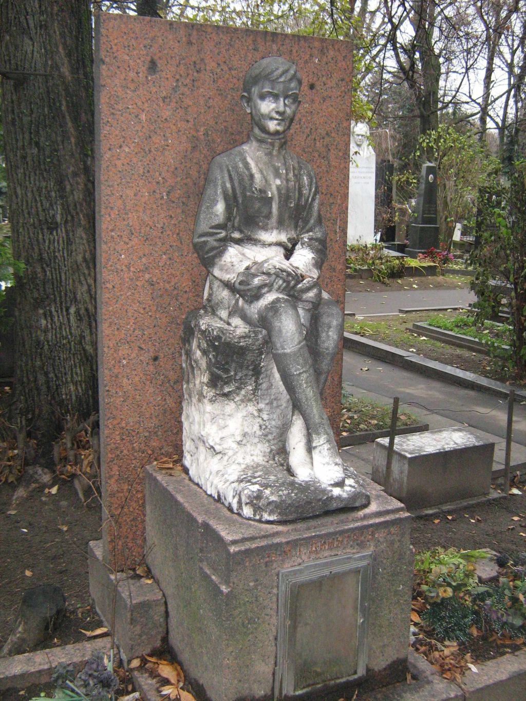 местоположение (участок 1, ряд 43, место 26) надгробия 1937 года в общей структуре Новодевичьего кладбища;объемно-пространственная композиция надгробия 1937 года;архитектурно-художественное решение надгробия: пластическая фигура сидящего на уступе мальчика, в том числе вертикально стоящая плита - фон, установленная на основании;постамент кубообразной формы, профилированный в верхней части, с киотом, закрывающимся прямоугольной дверцей;цоколь в виде прямоугольной плиты;мемориальные надписи;цветник, ограниченный рамой из прямоугольных блоков, две скамьи;материал и техника отделки надгробия: мрамор, сплав, гранит, обработка \"под шубу\", полировка, шлифовка, резьба, патинирование.Изменение предмета охраны может быть осуществлено в порядке и случаях, предусмотренных законодательством об объектах культурного наследия.