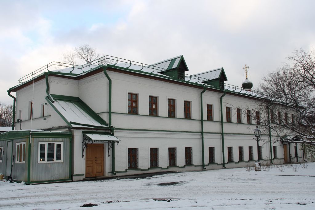 местоположение и градостроительные характеристики здания XIX века, его роль в композиционно-планировочной структуре ансамбля монастыря и квартала (согласно приложению к настоящему предмету охраны);объемно-пространственная композиция двухэтажного прямоугольного в плане здания 1-й трети XIX века, с торцевой лестничной пристройкой 2-й половины XIX века (согласно приложению к настоящему предмету охраны), в том числе высотные отметки по венчающему карнизу;крыша XIX века, ее конфигурация, материал, характер кровельного покрытия, в том числе высотные отметки по коньку, включая слуховые окна;композиционное решение и архитектурно-художественное оформление фасадов XIX века, включая размер, форму, местоположение, оформление оконных и дверных проемов, в том числе цоколь, рамочные наличники оконных проемов, подоконную тягу второго этажа, междуэтажный и венчающий карнизы (согласно приложению к настоящему предмету охраны);материал и характер отделки фасадных поверхностей XIX века: окраска по кирпичу;колористическое решение фасадов XIX века;пространственно-планировочная структура интерьеров здания в пределах капитальных стен, прямоугольных и арочных проемов и перекрытий XIX века (согласно приложению к настоящему предмету охраны);капитальные стены (согласно приложению к настоящему предмету охраны) и перекрытия XIX века, их конструкции и материал;местоположение лестницы XIX века (согласно приложению к настоящему предмету охраны);характер оформления столярных заполнений оконных и дверных проемов XIX века.Изменение предмета охраны может быть осуществлено в порядке и случаях, предусмотренных законодательством об объектах культурного наследия.