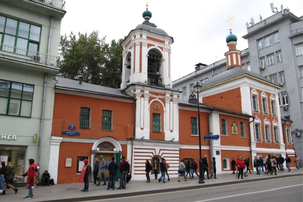 местоположение и градостроительные характеристики здания церкви с колокольней 1657 года, первой половины XVIII века, начала XIX века, участвующего в формировании фронта застройки улицы Маросейки, его роль в композиционно-планировочной структуре владения и квартала (согласно схеме предмета охраны);объемно-пространственная композиция здания церкви с колокольней 1701 года, включающая двусветный четверик храма с полукруглой криволинейной в плане апсидой, завершенный пологим куполом и главой на двухъярусном глухом барабане, трапезную и северный придел с апсидой и трапезной на подклете 1657 года, а также трехъярусную колокольню с переходом 1749 г ода и одноэтажные о подвалами пристройки 1701 года, начала XIX века, включая высотные отметки по венчающим карнизам (с учетом реставрации 1960-х и 1990-х годов; согласно схеме предмета охраны);крыши, купола и главы с крестами на первую половину XVIII - начала XIX века, их конструкция, конфигурация, характер кровельного покрытия, в том числе высотные отметки по конькам, зениту куполов и главам с крестами (с учетом реставрации 1960-х и 1990-х годов);композиционное решение и архитектурно-художественное оформление фасадов здания церкви с колокольней 1657 года, первой половины XVIII века, начала XIX века, включая размер, форму, местоположение и оформление оконных и дверных проемов, в том числе цоколь с валиками, лопатки, включая угловые, раскрепованная профилированная тяга, отделяющая подклетом,рамочные и перспективные с треугольными завершениями наличники оконных проемов подклета, колончатые наличники окон четверика с лучковыми и треугольными разорванными сандриками, широкий антаблемент с поясом тройного поребрика, венчающие карнизы придела и апсид с поясом поребрика, а также ленточный руст первого яруса колокольни, угловые спаренныепилястры тосканского и композитного ордера по верхним ярусам, раскрепованные профилированные тяги и карнизы, арочные ниши и арки открытого яруса звона с архивольтами и замками, филенки, широкий венчающий антаблемент с профилированным карнизом и гладким фризом, а также элементы оформления пристроек: перспективный портал главного входа с профилированным архивольтом, междуэтажный и венчающий профилированные карнизы (с учетом реставрации 1960-х и 1990-х годов; согласно схеме предмета охраны);материал и характер отделки фасадных поверхностей 1657 года, первой половины XVIII века, начала XIX века: белый камень, гладкая штукатурка с окраской, обмазка по кирпичу;колористическое решение фасадов 1657 года, первой половины XVIII века, начала XIX века (уточняется по результатам реставрационных исследований и раскрытий);пространственно-планировочная структура интерьеров здания церкви с колокольней в пределах капитальных стен, пилонов, прямоугольных и арочных проемов, перекрытий 1657 года, первой половины XVIIT века, начала XIX века (согласно схеме предмета охраны);капитальные стены, пилоны и перекрытия 1657 года, первой половины XVIII века, начала XIX века, их конструкции и материал, включая сводчатые перекрытия с распалубками 1657 года, первой половины XVIII века (согласно схеме предмета охраны);лестницы XVIII, XIX века, их местоположение (согласно схеме предмета охраны);архитектурно-художественное оформление интерьеров 1657 года, первой половины XVIII века, начала XIX века, включая белокаменные плиты пола в уровне подклета (уто