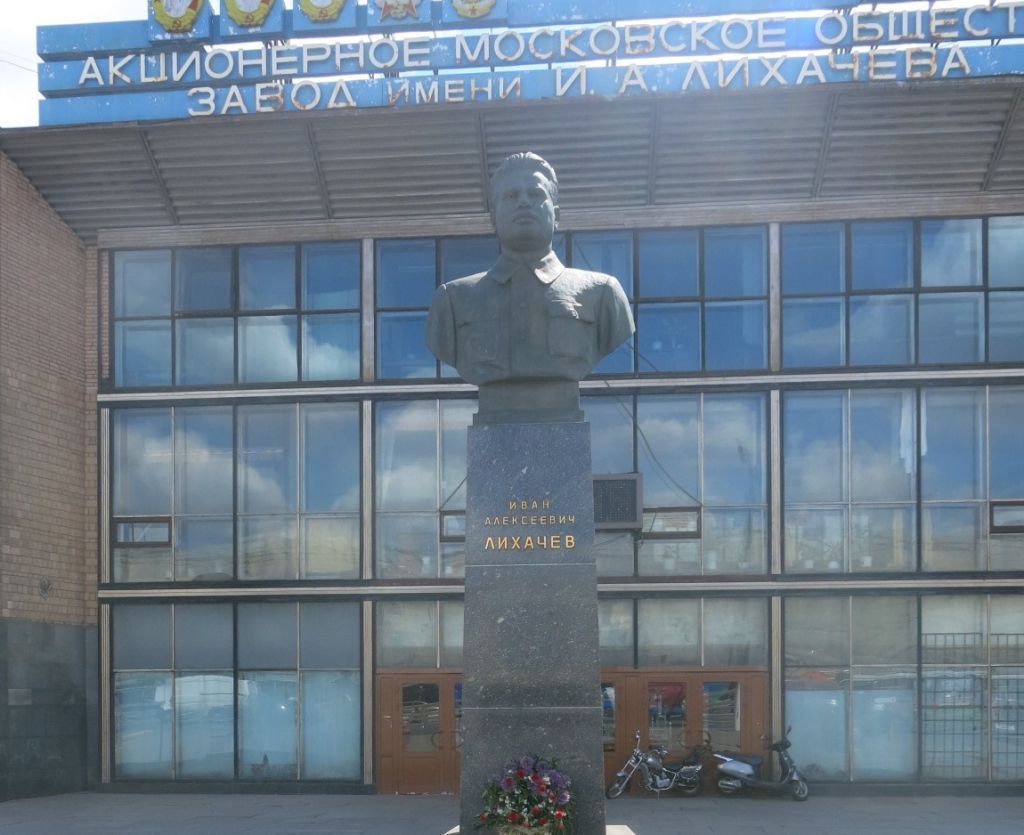 местоположение и градостроительные характеристики памятника1958 года, расположенного на открытой площадке перед зданием главной проходной завода имени И.А.Лихачева, его роль в композиционно- пространственной структуре владения и квартала (согласно схеме предмета охраны);объемно-пространственная композиция памятника 1958 года, включающая стереобат, сложный в плане постамент со скошенными сторонами из отполированных гранитных блоков, бронзовый погрудный бюст И.А.Лихачева, а также выложенную гранитными плитами площадку и цветник в обрамлении из гранитного бортового камня, в том числе габариты и высотные отметки (согласно схеме предмета охраны);конструкция, материал (гранит, бронза), характер и виды обработки поверхностей, колористическое решение памятника 1958 года;накладная позолоченная шрифтовая композиция на лицевой стороне постамента: \"Иван Алексеевич Лихачев\", включая технику нанесения, характер шрифта и покрытия, колористическое решение (согласно схеме предмета охраны).Изменение предмета охраны может быть осуществлено в порядке и случаях, предусмотренных законодательством об объектах культурного наследия.
