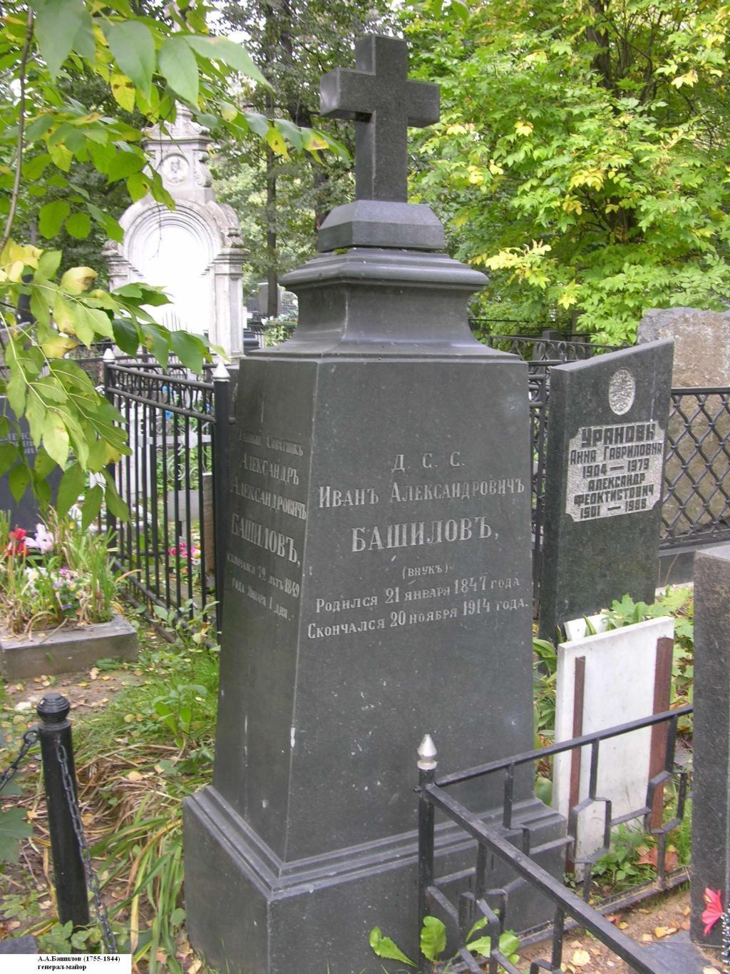 Могила Башилова Александра Александровича (1807-1854), поэта и Башилова Александра Александровича (1777-1847), сенатора, председателя Строительной комиссии в Москве (сохранилось надгробие)