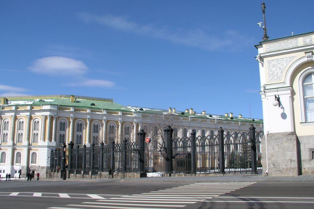 Ограда с двумя воротами между Большим дворцом и Оружейной палатой, 1838 - 1851 годы, архитекторы И.Л.Мироновский, К.А.Тон