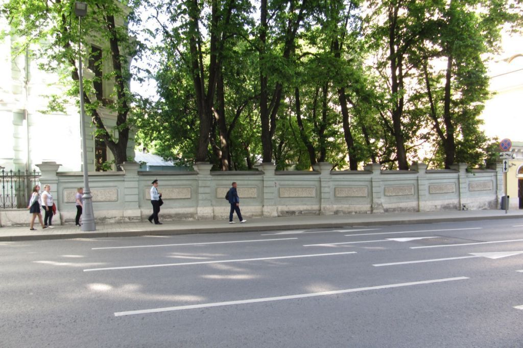 1) местоположение и градостроительные характеристики ограды, участвующей в формировании внутриквартальных границ владения, её роль в пространственно-планировочной структуре ансамбля и квартала;2)архитектурно-художественное оформление ограды 1888 г., в том числе кирпичные, оштукатуренные цоколь и пилоны, металлическая решетка ограды, их конструкция, материал и технология изготовления;3) колористическое решение ограды 1888 г. (уточняется в процессе реставрационных исследований);Предмет охраны может быть дополнен при проведении натурных реставрационных исследований.