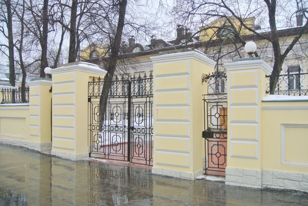 \"Ограда с воротами\" (г. Москва, Александра Солженицына ул., д. 11, стр. 1):местоположение и градостроительные характеристики ограды с воротами и калиткой 1866 года, участвующей в формировании фронта застройки улицы Александра Солженицына, ее роль в композиционно-планировочной структуре ансамбля и квартала (согласно схеме предмета охраны);объемно-пространственная композиция и архитектурно-художественное оформление ограды с воротами и калиткой 1866 года, включая раскрепованный цоколь, столбы с венчающим карнизом, глухие простенки ограды с крупными горизонтальными нишами-филенками и тягой, невысокие ажурные металлические решетки над ними, в том числе пилоны ворот и калитки, завершенные ступенчатыми карнизами, а также металлические ажурные створки ворот и калитки, в том числе габариты, высотные отметки ограды с воротами и калиткой, их конструкция и материал;материал и характер отделки ограды с воротами и калиткой 1866 года, в том числе гладкая штукатурка с окраской каменных поверхностей; колористическое решение ограды с воротами и калиткой 1866 года (уточняется по результатам реставрационных исследований и раскрытий).Изменение предмета охраны может быть осуществлено в порядке и случаях, предусмотренных законодательством об объектах культурного наследия.