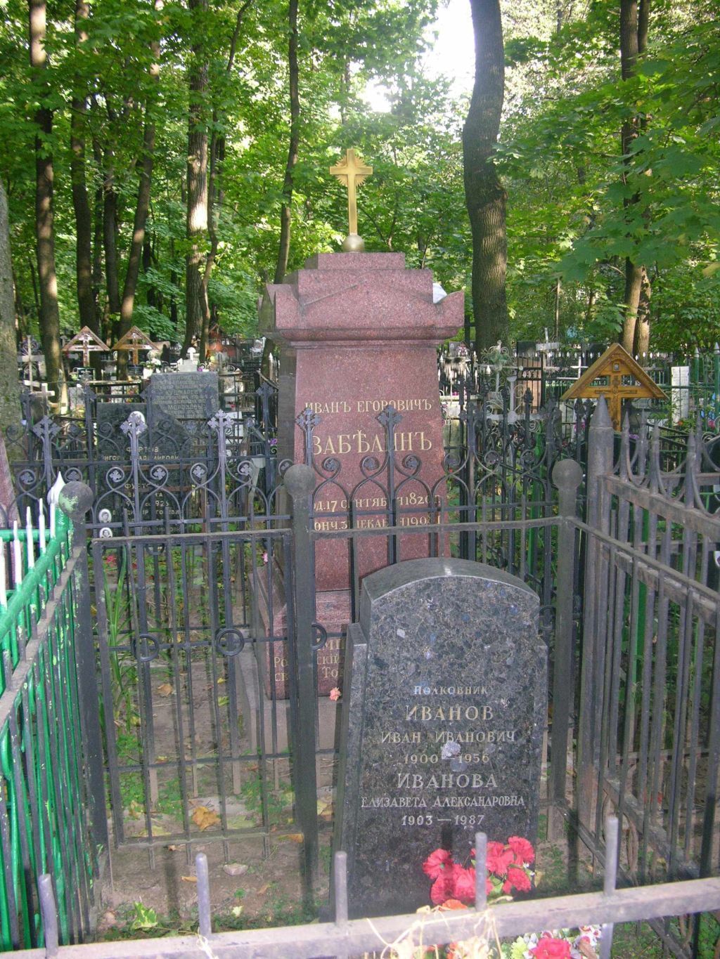существующее местоположение в общей структуре Ваганьковского кладбища и существующие габариты надгробного сооружения в целом, включая ограждение;объемно-пространственная композиция надгробного сооружения начала XX в.;архитектурно-художественное решение надгробного сооружения, в том числе материал и техника обработки (гранит, песчаник, металл, полировка, шлифовка, резьба, золочение, ковка);акротерий с резной короной и повышенной венчающей частью;постамент, профилированный в верхней части;крест с лучами на шаре;основание;мемориальные подписи, текст посвящения;ограда с изображениями крестов, установленная по периметру кладбищенского участка.Предмет охраны может быть дополнен при проведении натурных реставрационных исследований.