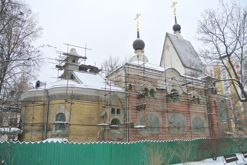 местоположение и градостроительные характеристики здания церкви 1908–1909 годов, его роль в композиционно-планировочной структуре владения и квартала (согласно схеме предмета охраны);объемно-пространственная композиция двусветного с подвалом здания церкви 1908–1909 годов, увенчанного главкой с крестом на цилиндрическом барабане, включающая пониженную трехчастную апсиду, хоры, двухъярусный притвор с крыльцом-тамбуром, широкой лестницей перед входом и с лестничным блоком, завершенным башней под низким шатром, а также звонницу над притвором на четырех фигурных столбах с щипцовой двускатной кровлей и главкой на цилиндрическом барабане (согласно схеме предмета охраны), в том числе высотные отметки по шипцам, килевидным фронтонам, венчающим профилированным карнизам и кокошникам глав (с учетом реставрационных работ 2000-х годов);крыши, шатер и главы с крестами 1908–1909 годов, их конструкция, конфигурация, материал, характер кровельного покрытия, включая майоликовую черепицу крыльца-тамбура, звонницы и шатра башенки (изготовленную в абрамцевских мастерских), в том числе высотные отметки по конькам кровли, в том числе вентиляционная труба с \"дымником\" и слуховое окно апсиды (с учетом реставрационных работ 2000-х годов);композиционное решение и архитектурно-художественное оформление фасадов здания церкви 1908–1909 годов, в том числе местоположение, форма, размер и оформление дверных и оконных проемов: цоколь, перспективный портал парадного входа с килевидным архивольтом и фигурными колонками с архитравами, покрытые полихромной майоликовой облицовкой, креповки боковых фасадных плоскостей (полукруглый выступ парадной лестницы и узкий башнеобразный выступ винтовой лестницы), оформление шатра в верхней части машикулями и парными арочными окнами с колонками в простенках, тяги, ширинки, нишки, широкий майоликовый фриз, венчающие профилированные карнизы с поясами ширинок, полукруглые с килевидным подвышением фронтоны над щипцами по центральным осям боковых фасадов, плоские фигурные наличники и навершия с щипцами, архивольтами и полуколонками, килевидные кокошники в основании барабанов главок храма, щипцовый фронтон с майоликовым панно с изображением двух ангелов, ниша-киот для иконы Воскресения Христова, полуциркульные арки звонницы, местоположение, конструкция, включая материал, рисунок расстекловки и колористическое решение витражей начала XX века (с учетом реставрационных работ 2000-х годов) (согласно схеме предмета охраны); материал и характер отделки фасадных поверхностей 1908–1909 годов, в том числе темно-серый карельский с бучардированной поверхностью гранит облицовки цоколя храма, глазурованный светлый и коричневый кирпич облицовки стен и апсиды, полихромные майоликовые и изразцовые плитки, гладкая штукатурка (с учетом реставрационных работ 2000-х годов);колористическое решение фасадов здания церкви 1908–1909 годов (уточняется по результатам реставрационных исследований);пространственно-планировочная структура интерьеров здания церкви 1908–1909 годов в пределах капитальных стен, пилонов, прямоугольных и арочных проемов и ниш, перекрытий, включая балкон хор (согласно схеме предмета охраны);капитальные стены, пилоны и перекрытия, в том числе сводчатые, 1908–1909 годов, их конструкция и материал (согласно схеме предмета охраны); лестни