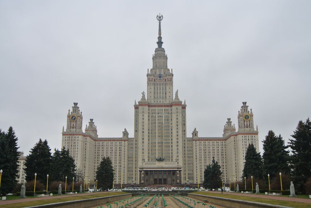 1. «Комплекс зданий Московского государственного университета им. М.В. Ломоносова», (1949-1953 гг., арх. Руднев Л.В., Чернышев С.Е., Абросимов П.В., Хряков А.Ф., инж. Насонов В.Н.): местоположение и градостроительные характеристики ансамбля, его роль в композиционно-планировочной структуре района Ленинские Горы (согласно схеме предмета охраны); объемно-пространственная и пространственно-планировочная композиция ансамбля, в том числе габариты, высотные и силуэтные характеристики зданий, сооружений и малых архитектурных форм, входящих в состав ансамбля, соотношение застроенных и незастроенных пространств, местоположение и композиционное взаимодействие зданий, сооружений, малых архитектурных форм, элементов благоустройства территории (согласно схеме предмета охраны). 2. Улица Ленинские Горы, дом 1 (Главный корпус, 1949-1953 гг., арх. Руднев Л.В., Чернышев С.Е., Абросимов П.В., Хряков А.Ф., Зиновьев П.П., Золотницкая P.M., Селюгин Г.В., Мошинский М.Н., Голощапов И.С. и др., инж. Насонов В.Н., Касаткин Д.А., Гунгер К.Ф., Никитин Н.В. и др.): местоположение и градостроительные характеристики здания, его роль в композиционно-планировочной структуре района Ленинские Горы и ансамбля Московского государственного университета имени М.В. Ломоносова (согласно схеме предмета охраны); объемно-пространственная композиция здания 1949-1953 годов, симметричной Ж‑образной формы плана, сформированного из нескольких связанных между собой объемов переменной этажности: центрального объема с пятиярусной башней со шпилем со звездой, с объемами двух парадных входов (главного и клубного с многоколонными портиками), двух боковых объемов с угловыми «часовыми башнями», соединенных переходами с четырьмя объемами, завершенными открытыми галереями (согласно схеме предмета охраны), в том числе высотные отметки по венчающим карнизам, аттикам, ярусам башни; конфигурация крыш и характер кровельного покрытия 1949-1953 годов, в том числе высотные отметки по конькам, включая шпиль со звездой, его конструкция, материал, декоративное оформление, высотные отметки; симметричное композиционное решение и архитектурно-художественное оформление фасадов 1949-1953 годов, включая местоположение, форму, размер, оформление оконных и дверных проемов, проездные арки, граненые башенки с колоннадой и декоративным завершением («шишки пинии», короны), парапеты ограждений эксплуатируемой кровли, пилястры, колонны, полуколонны, лопатки, филенки, междуэтажные и венчающие карнизы, люкарны, декоративные пояса, орнаментальные пояса многоцветной майолики, окна-иллюминаторы, лепной декор, часы, термометр и барометр на угловых «часовых башнях», балконы на фигурных консолях, в том числе композиционное решение и архитектурно‑художественное оформление главного входа 1949-1953 годов, включая три многоколонных портика с венчающим карнизом большого выноса с поясом кронштейнов, аттиком с двумя барельефами и бронзовыми композициями в завершении, кессонированными потолками с лепным растительным декором, порталами входных дверей, накладными бронзовыми композициями, с широкой наружной лестницей с двумя симметричными боковыми пандусами, а также два боковых цокольных объема с двумя ростральными колоннами с металлическим накладным декором, с пристенными фонтанами с маскаронами и чашами, в том числе оформление оконных проемов (