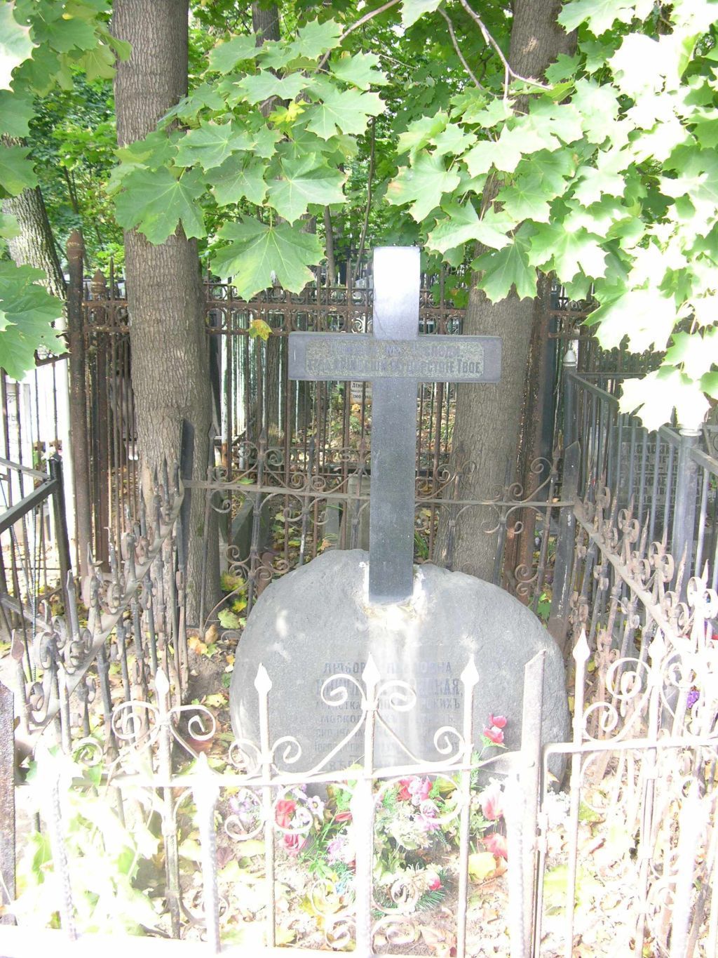местоположение могилы с надгробием последней трети XIX века на участке № 14, их роль в композиционно-планировочной структуре восточной части Ваганьковского кладбища (согласно схеме предмета охраны); объемно-пространственная композиция и архитектурно-художественное оформление надгробия последней трети XIX века, представляющего собой крест из полированного темно-серого гранита на постаменте в виде природного камня-валуна округлой формы, в том числе прясла металлической ажурной ограды с калиткой первой половины XX века, включая габариты и высотные отметки (согласно схеме предмета охраны); конструкция, материал (темно-серый и светло-серый гранит), характер и виды обработки поверхностей (полировка, грубая шлифовка, бучардирование, гравировка);шрифтовые композиции с рельефными обработанными полировкой надписями: \"Помяни мя, Господи, егда прiидише во царствiе Твое\" (на лицевой стороне креста на прямоугольном матовом поле со скругленными углами); \"Любовь Павловна НИКУЛИНА-КОСИЦКАЯ артистка Императорскихъ Московскихъ Театровъ скончалась 5 сентября 1868 г. Господи! Прiими духъ ея с миромъ. Вѣра Ивановна МАТВЕЕВА рожденная НИКУЛИНА родил. 26 апрѣля 1852 г. сконч. 24 ноября 1870 г.\" (на лицевой стесанной и обработанной грубой шлифовкой стороне камня-валуна); \"Прiидите ко мнѣ вси, труждающiися и обремененнiи, и Азъ упокою вы. Отъ Матв. Гл. II. Ст.28.\" (на тыльной стороне камня-валуна на стесанном с заглублением поле в фигурной рамке), включая технику нанесения, характер шрифта (согласно схеме предмета охраны).Изменение предмета охраны может быть осуществлено в порядке и случаях, предусмотренных законодательством об объектах культурного наследия.