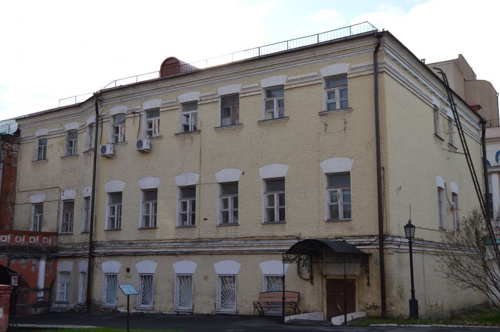 местоположение и градостроительные характеристики здания 1890 года, участвующего в формировании фронта застройки улицы Петровки, его роль в композиционно‑планировочной структуре ансамбля Высоко-Петровского монастыря; объемно-пространственная композиция прямоугольного в плане трехэтажного здания 1890 года, включая высотные отметки по венчающим карнизам; крыши на 1890 год, их конфигурация, материал, в том числе высотные отметки по конькам, включая слуховое окно; композиционное решение и архитектурно-художественное оформление фасадов здания 1890 года, включая местоположение, форму, размер, оформление оконных и дверных проемов, их габариты, профилированные междуэтажные карнизы, венчающие профилированный крепованый карниз, парные и одинарные колонки, наличники первого этажа, наличники с треугольными и разорванными фронтонами во втором и третьем этажах фасада, лопатки, декорированные ширинками, полуколонки, объединяющие два верхних этажа с опорами в виде трехчастных консолей; материал и характер отделки фасадных поверхностей 1890 года, в том числе гладкая штукатурка с окраской; колористическое решение фасадов 1890 года (уточняется в процессе реставрационных исследований и раскрытий); пространственно-планировочная структура интерьеров здания в пределах капитальных стен, перегородок и перекрытий 1890 года; капитальные стены и перекрытия 1890 г., их материал и конструкция; лестницы 1890 года, их месторасположение, конструкция, материал, включая декоративное оформление; местоположение служебного и парадного входов 1890 года; архитектурно-художественное оформление интерьеров 1890‑х годов, в том числе тянутые профилированные штукатурные карнизы в интерьерах второго этажа; печи 1890 года в интерьерах второго этажа; характер оформления столярных заполнений оконных проемов 1890‑х годов. Предмет охраны может быть уточнен при проведении натурных реставрационных исследований.