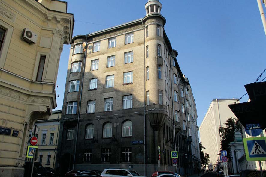 местоположение и градостроительные характеристики здания, участвующего в формировании застройки улицы Знаменки и Староваганьковского переулка, его роль в композиционно-планировочной структуре квартала (согласно схеме предмета охраны);объемно-пространственная композиция здания 1909 года, включая эркер и декоративную угловую башню с куполом, ризалиты и эркеры на дворовом фасаде, включая высотные отметки по венчающим карнизам (согласно схеме предмета охраны);крыша 1909 года, ее конструкция, конфигурация, материал, характер кровельного покрытия, высотные отметки по конькам (уточняется в процессе реставрационных исследований); композиционное решение и архитектурно-художественное оформление фасадов 1909 года, включая русты, лепные фризы и панно, облицовку керамической плиткой, лепной декор, металлический козырек над главным входом с цепями и двумя подвесными фонарями (согласно схеме предмета охраны);материал и характер отделки фасадных поверхностей 1909 года, включая штукатурку уличных фасадов, окраску дворовых фасадов по кирпичу; колористическое решение фасадов (уточняется в процессе реставрационных исследований);пространственно-планировочная структура интерьеров 1909 года в пределах капитальных стен и перекрытий (согласно схеме предмета охраны);капитальные стены и перекрытия 1909 года, их конструкция и материал, в том числе сводчатые (согласно схеме предмета охраны);парадная лестница 1909 года, ее местоположение, материал, декоративное оформление (металлическое кованое, клепаное, с литыми накладками ограждение в стиле \"модерн\" с дубовыми поручнями, материал и декор ступеней, выстилка площадок), включая карнизы, лепные фризы из венков, филенки, женские маскароны, осветительные приборы (уточняется в процессе реставрационных исследований; согласно схеме предмета охраны);местоположение служебных лестниц 1909 года (уточняется в процессе реставрационных исследований; согласно схеме предмета охраны);архитектурно-художественное оформление интерьеров вестибюля 1909 года, включая карнизы, лепные фризы из венков, филенки, женские маскароны, выстилка пола в вестибюле парадной лестницы, расписные плафоны, роспись стен, осветительные приборы (уточняется в процессе реставрационных исследований; согласно схеме предмета охраны);шахта лифта 1909 года, ее материал и декоративное оформление, в том числе зеркал на первом этаже;столярные заполнения оконных и дверных проемов 1909 года, их материал, характер оформления, в том числе со скобяным прибором и наличниками (уточняется в процессе реставрационных исследований). Изменение предмета охраны может быть осуществлено в порядкеи случаях, предусмотренных законодательством об объектах культурного наследия.