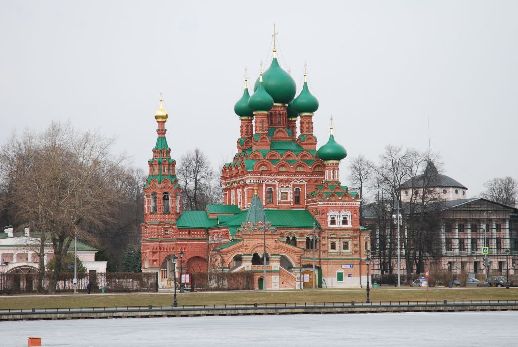 местоположение и градостроительные характеристики здания церкви 1678-1692, 1877-1878 годов, участвующего в застройке улицы 1-я Останкинская, его роль в композиционно-планировочной структуре ансамбля \"Усадьбы Останкино\" и квартала;объемно-пространственная композиция квадратного в плане здания церкви 1678-1692 годов на высоком подклете, включающего двусветный бесстолпный четверик храма с пониженным объемом полукруглой апсиды с трехлепестковым членением внутри, завершенный пятиглавием на горке килевидных кокошников, боковые симметричные двусветные приделы с пониженными относительно центральной полукруглыми апсидами, завершенные ярусами кокошников и луковичными главами; трехчастная паперть-гульбище, охватывающая храм с приделами с трех сторон; а также три крыльца с лестницами и колокольней по оси с шатровыми завершениями 1877-1878 годов (архитектор Н.В. Султанов), включая высотные отметки по венчающим карнизам, килевидным кокошникам, каменному шатру колокольни; крыши, главы с крестами и шатер южного крыльца, их конструкция, конфигурация, материал, характер кровельного покрытия, в том числе высотные отметки по конькам кровли, включая чердачные окна и их оформление; композиционное решение и архитектурно-художественное оформление фасадов здания 1678-1692, 1877-1878 годов, включая размер, форму, местоположение и оформление оконных и дверных проемов, в том числе белокаменный цоколь и нижнюю часть подклета, наугольные пилястры, рамочные с треугольными фронтончиками наличники окон подклета и завершающий его широкий профилированный карниз с валиком и поясом поребрика, полуколонки в простенках апсид; горизонтальные ряды ширинок верхнего яруса паперти-гульбища и вертикальные ряды перспективных ширинок с цветными изразцами внутри на фасадных углах и в простенках приделов, а также строенные короткие полуколонки на углах верхнего яруса храма с поясом белокаменных балясин в антаблементе, венчающие раскрепованные карнизы с фризовыми поясами поребрика, городков, аркатурных поясков, два ряда в разбежку перспективных кокошников с килевидными архивольтами в завершении четверика и приделов, квадратные постаменты с кокошниками и высокие тонкие шеи глав с аркатурно-колончатыми поясами, узкими оконными проемами и венчающими карнизами с уступчатым дробным фризом; а также рамочные ниши и колончатые наличники оконных проемов и киотов, включая объемные крупные и мелкие элементы наборных колонок с белокаменными дыньками посредине, подоконные карнизные полочки с консолями, килевидные и двойные с гирькой завершения, в том числе с коронами из крупных граненых лучей, а также декоративная окантовка по внутреннему краю арочек радиально направленными зубчиками (с учетом реставрационных работ 2010-2011 годов); композиционное решение и архитектурно-художественное оформление фасадов колокольни 1678-1692, 1877-1878 годов, включая размер, форму, местоположение и оформление оконных и дверных проемов, в том числе арочные проемы, опирающиеся на квадратные пилоны с широкими архивольтами и профилированными импостами в нижнем уровне двухъярусного четверика, наугольные пилястры с вертикальными поясами перспективных ширинок с изразцами внутри, зигзагообразный рельефный пояс, венчающие ярус карниз с городчатым белокаменным фризом, верхний раскрепованный полуярус, обраб
