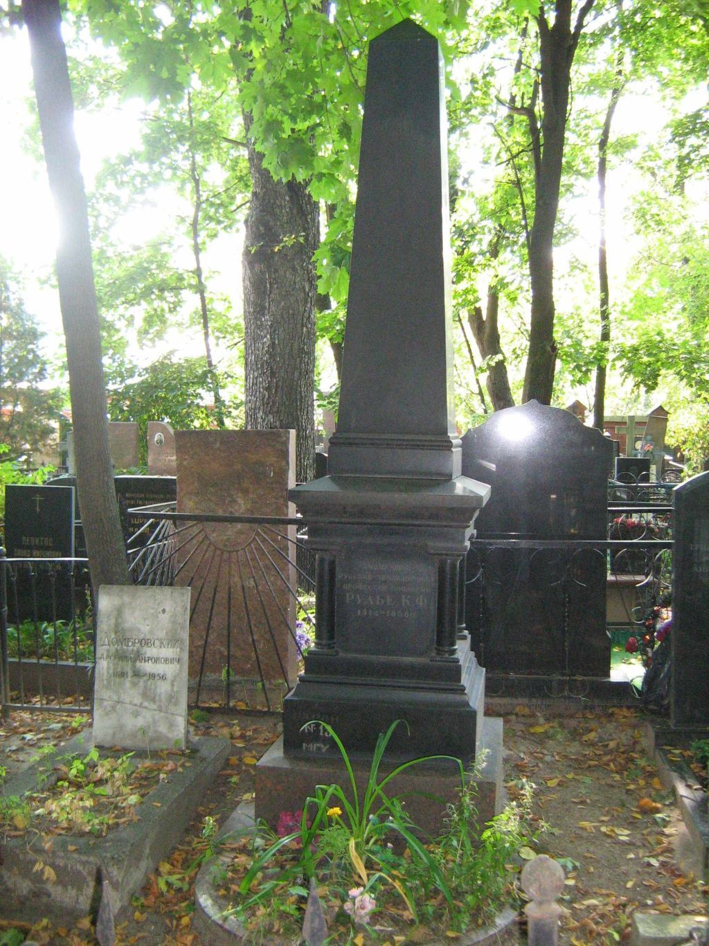 местоположение могилы с надгробием первой трети XX века в южной части Введенского кладбища, на участке № 2 (согласно схеме предмета охраны);объемно-пространственная композиция и архитектурно-художественное оформление надгробия первой трети XX века, включая прямоугольную плиту-основание из красного полированного гранита, постамент с цоколем из полированного габбро, декорированный профилями и трехчетвертными колонками на углах, обелиск, цветочницу с закругленным торцом из красного полированного гранита, в том числе габариты и высотные отметки (согласно схеме предмета охраны);конструкция, материал (полированный габбро, красный гранит), характер и виды обработки поверхностей (полировка, шлифовка, гравировка) памятника первой трети XX века;шрифтовые композиции: \"ВИДНЕЙШИЙ РУССКИЙ ЭВОЛЮЦИОНИСТ ПРОФЕССОР ЗООЛОГИИ РУЛЬЕ К.Ф. 1814-1858 г.г.\" (на лицевой (северной) стороне постамента), \"В ПРИРОДЕ НЕТ ПОКОЯ, НЕТ ЗАСТОЯ…В ПРИРОДЕ ВСЕОБЩЕЕ НЕПРЕРЫВНОЕ ДВИЖЕНИЕ И БЕЗУСЛОВНАЯ СМЕРТЬ НЕВОЗМОЖНА. Рулье\" (на восточной стороне постамента), авторская надпись: \"И.А.ПАВЛОВЪ.\" (с восточной стороны на цоколе), их местоположение, характер шрифта, способ нанесения (согласно схеме предмета охраны).Изменение предмета охраны может быть осуществлено в порядке и случаях, предусмотренных законодательством об объектах культурного наследия.