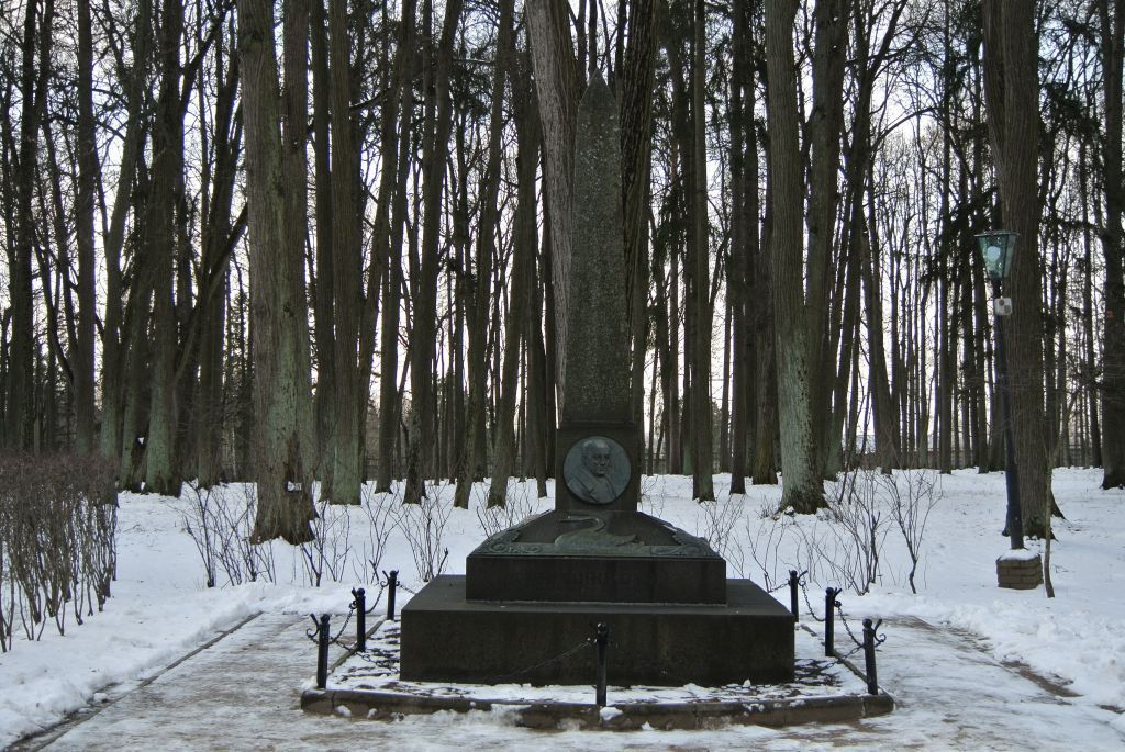 местоположение памятника В.А.Жуковскому 1913 года в парке усадьбы \"Остафьево\" (Вяземских) (согласно приложению к настоящему предмету охраны); планировочная структура памятника: площадка, дорожка и цветники; объемно-пространственная композиция и архитектурно-художественное оформление памятника В.В.Жуковскому 1913 года, представляющего собой обелиск на квадратном плинте, установленном на постамент с медальоном с горельефным портретом В.А.Жуковского, а также верхнем основании пирамидальной формы из двух блоков, выполненный из серого шлифованного гранита, с бронзовыми рельефными фигурами лебедей, и нижним основанием квадратной формы из серого шлифованного гранита, состоящий из четырех блоков, в том числе габариты и высотные отметки (согласно приложению к настоящему предмету охраны); конструкция, материал (сплав на основе меди, бронза, гранит), характер и виды обработки поверхностей (литье, шлифовка, гравировка); шрифтовые композиции: \"ЖУКОВСКОМУ.\" (на передней прямоугольной грани постамента); выгравированная цитата из стихотворения В.А.Жуковского \"Царскосельский лебедь\" (бронзовая доска на задней грани кубического основания): \"ЛЕБЕДЬ БЛАГОРОДНЫЙ ДНЕЙ ЕКАТЕРИНЫПѢЛЪ, ПРОЩАЯСЬ СЪ ЖИЗНЬЮ, ГИМНЪ СВОЙ ЛЕБЕДИНЫЙ; А КОГДА ДОПѢЛЪ ОНЪ – НА НЕБО ВЗГЛЯНУВШИИ КРЫЛАМИ СИЛЬНО ДРЯХЛЫМИ ВЗМАХНУВШИКЪ НЕБУ, КАКЪ ВО ВРЕМЯ ОНОЕ БЫВАЛО,ОНЪ СЪ ЗЕМЛИ РВАНУЛСЯ… И ЕГО НЕ СТАЛОВЪ ВЫСОТѢ…И НАВЗНИЧЪ СЪ ВЫСОТЫ УПАЛЪ ОНЪ;И ПРЕКРАСЕНЪ МЕРТВЫЙ НА ХРЕБТѢ ЛЕЖАЛЪ ОНЪ,ШИРОКО РАСКИНУВЪ КРЫЛЬЯ, КАКЪ ЛЕТЯЩИЙ,ВЪ НЕБЕСА ВПЕРЯЯ ВЗОРЪ УЖЪ НЕГОРЯЩIЙ.\", включая технику нанесения (контррельеф, гравировка), характер и оформление шрифта, колористическое решение (согласно приложению к настоящему предмету охраны).Изменение предмета охраны может быть осуществлено в порядке и случаях, предусмотренных законодательством об объектах культурного наследия.