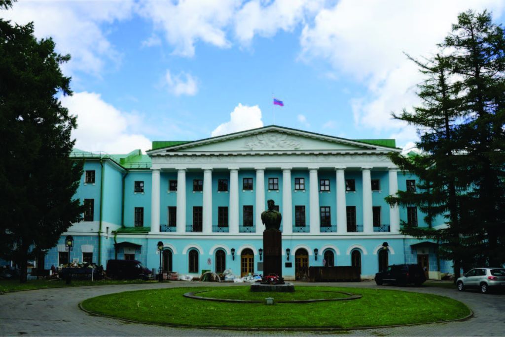 парадный двор, его композиционная и планировочная структура, включая регулярную планировку, трассировку дорожек и площадок в виде двух конвертов и центрального овала, бассейны фонтанов 1930-х годов, элементы регулярного исторического озеленения;ограда парадного двора, включая рустованные пилоны ворот и глухие прясла, белокаменный цоколь и карниз с мугулами, ступенчатый аттик, металлические фигурные створки ворот, металлическая ограда с круглыми столбами начала XIX века (согласно схеме предмета охраны).