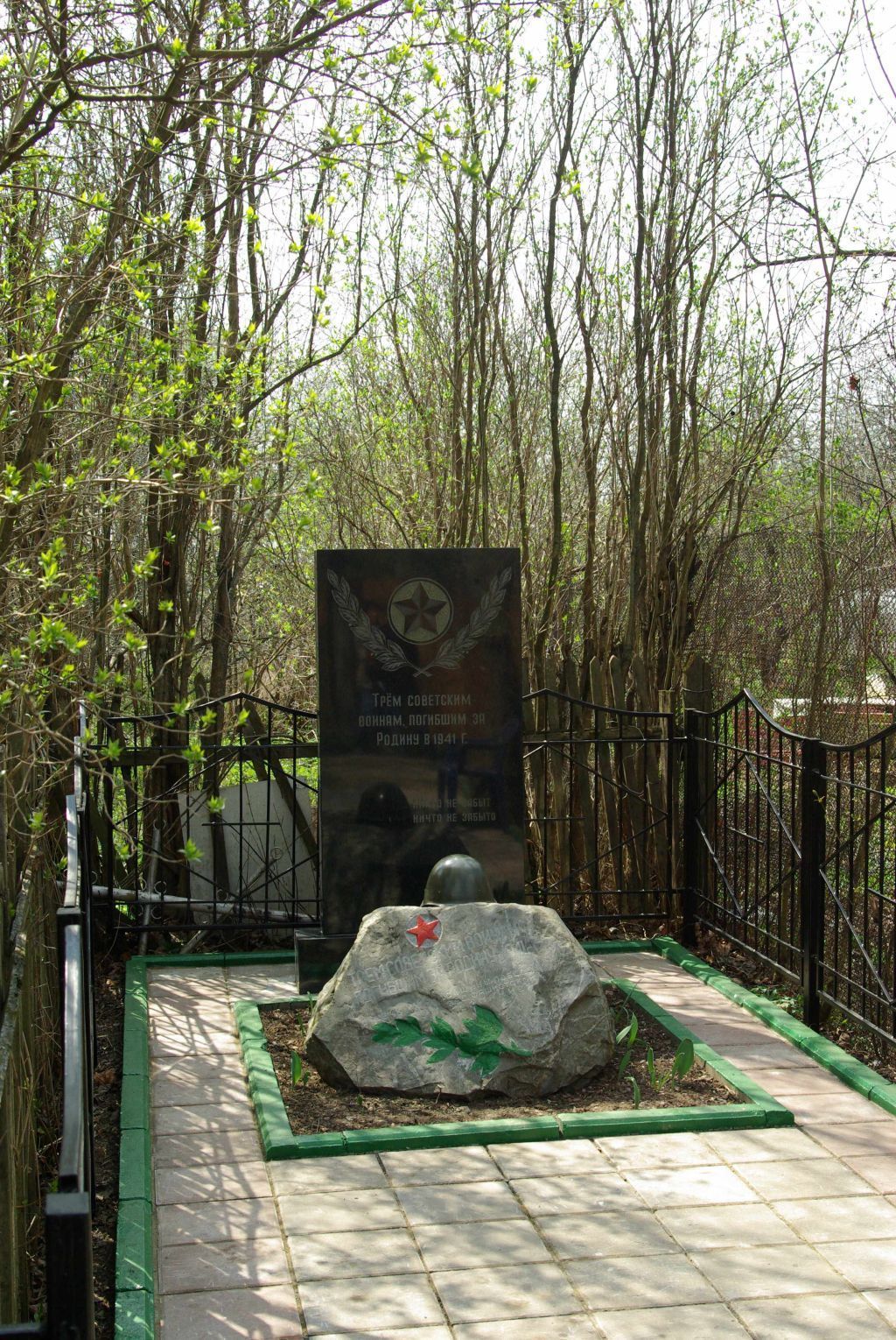местоположение братской могилы с надгробным памятником в поселке Малино (согласно приложению к настоящему предмету охраны);объемно-пространственная композиция и архитектурно-художественное оформление памятника, представляющего гранитный валун с солдатской каской, рельефное изображение пятиконечной звезды с лавровой веткой внизу в круглом медальоне с памятной надписью, включая габариты и высотные отметки сооружения, в том числе гранитную стелу с памятными надписями и изображением звезды в круглом медальоне и двух лавровых веток, установленную в 1990-е годы (согласно приложению к настоящему предмету охраны);конструкция, материал, характер обработки и фактура поверхностей памятника, включая необработанный гранитный камень серого цвета с разводами, металлическую солдатскую каску, колористическое решение памятника;шрифтовая композиция на лицевой стороне гранитного валуна с памятной надписью: \"ТРЕМ СОВЕТСКИМ ВОИНАМ, ПОГИБШИМ ЗА РОДИНУ в 1941 г. В ДЕНЬ ХХ ГОДОВЩИНЫ ПОБЕДЫ НАД ФАШИСТСКОЙ ГЕРМАНИЕЙ\", включая технику нанесения (контррельеф), характер и покрытие (бронзовка) шрифта, колористическое решение (согласно приложению к настоящему предмету охраны).Изменение предмета охраны может быть осуществлено в порядке и случаях, предусмотренных законодательством об объектах культурного наследия.