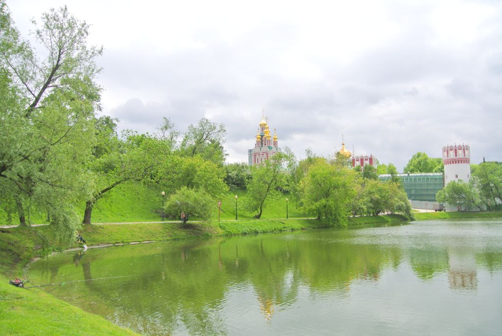 градостроительная роль парковой территории в формировании облика Новодевичьего монастыря и их композиционная взаимосвязь в сложившейся структуре района;силуэт парка, формирующий городской ландшафт и являющийся акцентом в оформлении береговой линии реки Москвы;пространственно-планировочные характеристики сквера и парка, подковообразно охватывающих ансамбль монастыря, с системой закрытых, открытых и полуоткрытых пространств, включая водную поверхность прудов.1. Элементы рельефа:1.1. Ровный рельеф нижнего парка с откосами вдоль дорожных проездов и аллей, ограниченного с восточной стороны склоном надпойменной террасы.1.2. Насыпной холм, оформленный в виде альпинария, в юго-западной части нижнего парка.1.3. Откос вдоль северной стены монастыря с дорожкой, соединяющей верхний и нижний парк.1.4. Ровный рельеф верхнего парка, расположенного на надпойменной террасе.1.5. Ровный рельеф трех скверов с плавным понижением в сторону Лужников вдоль восточных стен монастыря. 2. Элементы гидрографической сети:2.1. Большой пруд, конца XVI-XX веков, ковшеобразной формы, с одернованными откосами.2.2. Малый пруд прямоугольной формы, конца XVI-XX веков.2.3. Мостик между Большим и Малым прудами, включая декоративное металлическое ограждение.3. Культурный слой на прилегающей к стенам монастыря территории.4. Ландшафтно-планировочные характеристики:4.1. Западная часть нижнего парка, оформленная откосами по типу булленгрина, имеющая смешанную регулярно-пейзажную планировку, 1957 года.4.2. Центральная овальная поляна в нижнем парке, ограниченная прогулочной дорожкой и оформленная цветочной рабаткой, 1957 года.4.3. Кольцевая прогулочная дорожка по набережной Большого пруда, включая кленовую аллею с западной стороны, 1957 года.4.4. Дорожка, проходящая по периметру парка, 1957 года.4.5. Поперечная липовая аллея нижнего парка, продолжающаяся от мостика в сторону Новодевичьей набережной, 1957 года.4.6. Регулярная планировка верхнего парка, включая овальную поляну.4.7. Три сквера по Лужнецкому проезду: верхний прямоугольный, малый и нижний ромбовидный, с аллеями и круглой площадкой, оформленной в центре клумбой.5. Растительность:5.1. Рядовая посадка ивы по периметру Большого и Малого прудов, включая отдельные старовозрастные экземпляры ивы, начала-середины XX века. 5.3. Отдельные экземпляры и рядовые посадки липы мелколистной вдоль проездов по периметру нижнего парка, середины XX века.5.4. Отдельные экземпляры лиственницы в нижнем и верхнем парке.5.5. Экземпляр дуба красного на поляне возле Малого пруда, середины XX века. 6. Видовые раскрытия:6.1. Узнаваемый вид ансамбля Новодевичьего монастыря с северной оконечности Большого пруда (вид-\"бренд\").6.2. Виды с дорожек вокруг Большого пруда.6.3. Виды вдоль центральной кленовой аллеи.6.4. Виды с бровки откоса надпойменной террасы на стены и башню монастыря, на нижний парк с прудом.7. Произведения монументального искусства на территории Сквера и Парка: 7.1. Скульптура \"Дружба народов\", 1957 года в прямоугольном сквере.7.2. Скульптура \"Утка и утята\", 1991 года в нижнем парке.8. Местоположение декоративного ограждения трех скверов из чугунного литья и входов, оформленных гранитными круглыми тумбами и плитами в уровне дорожного покрытия, включая сохранившийся фрагмент ограждения и оформления входа со стороны улицы 10-летия Октября.9. Местоположение павильона к