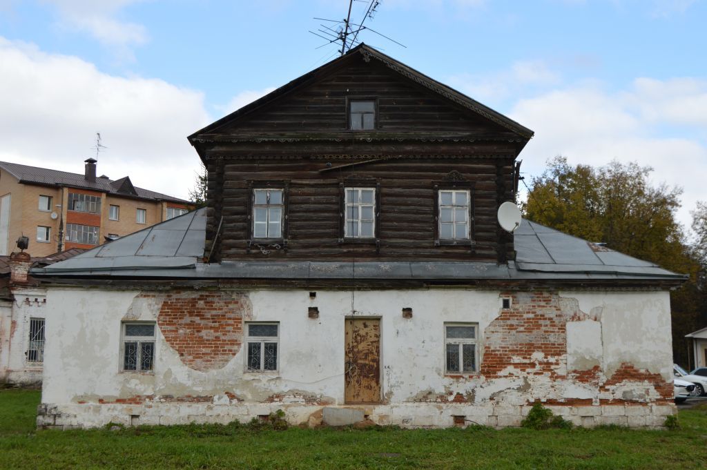 местоположение и градостроительные характеристики здания на кон. XIX в., его роль в композиционно-планировочной структуре усадьбы; объемно-пространственная композиция прямоугольного в плане двухэтажного здания с неполным верхним объемом (первый этаж из кирпича, второй сложен из круглых бревен), в том числе высотные отметки по венчающему карнизу и коньку крыши; крыша кон. XIX в., конструкция, материал, конфигурация, характер кровельного покрытия; композиционное решение и архитектурно-художественное оформление фасадов кон. XIX в., в том число: местоположение, форма, размер и оформление дверных и оконных проемов, деревянный декор резного карниза второго этажа и фронтона, резные оконные наличники окон 2 этажа; материал и характер отделки фасадных поверхностей на кон. XIX в.; колористическое решение фасадов; пространственно-планировочная структура интерьеров здания в пределах капитальных стен, перекрытий и дверных проемов в капитальных стенах кон. XIX в.; конструкции и материалы капитальных стен и перекрытий кон. XIX в. (стены первого этажа - кирпичные на известковом растворе, стены второго этажа - деревянные из круглых бревен, перекрытия - плоские); архитектурно-художественное оформление интерьеров кон. XIX в.; лестницы кон. XIX в., местоположение, материал отделки, архитектурно‑художественное оформление.