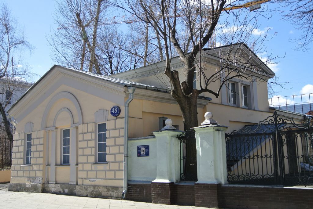 3. Флигель (строение 1): местоположение и градостроительные характеристики здания первой половины XIX века, участвующего в формировании фронта застройки улицы Пятницкой, его роль в композиционно-планировочной структуре ансамбля и квартала; объемно-пространственная композиция одноэтажного с мезонином здания первой половины XIX века, включая высотные отметки по венчающему карнизу;конфигурация крыши XIX века; композиционное решение и архитектурно-художественное оформление фасадов первой половины XIX века, в том числе местоположение, форма, размер, оформление дверных и оконных проемов, руст, пилястры, венчающий карниз (с учетом реставрационных работ 2004 года).