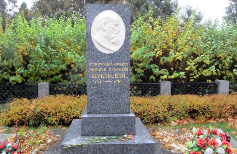местоположение могилы Н.Е.Жуковского с надгробным памятником на территории кладбища бывшего Донского монастыря (согласно приложению к настоящему предмету охраны);объемно-пространственная композиция и архитектурно-художественное оформление надгробного памятника, включая прямоугольное подножие из трех гранитных плит, двухступенчатое цокольное основание, квадратную в сечении стелу, барельефный профильный портрет в овальном медальоне в нише, ограду, ее цоколь, ограждения низким широким бортом с гранеными квадратными блоками на углах и торцах, ажурную решетку в каменных столбах, две скамейки, в том числе габариты и высотные отметки (согласно приложению к настоящему предмету охраны);конструкция, материал (чугун, светло-серый гранит, мрамор), характер и виды обработки поверхностей (шлифовка, гравировка), включая колористическое решение надгробия;шрифтовая композиция на лицевой стороне стелы под барельефным портретом, с памятной надписью: \"ОТЕЦ РУССКОЙ АВИАЦИИ НИКОЛАЙ ЕГОРОВИЧ ЖУКОВСКИЙ 1847-1921\", включая ее местоположение, технику нанесения (контррельеф), характер и оформление шрифта (золочение), колористическое решение (согласно приложению к настоящему предмету охраны).Изменение предмета охраны может быть осуществлено в порядке и случаях, предусмотренных законодательством об объектах культурного наследия.