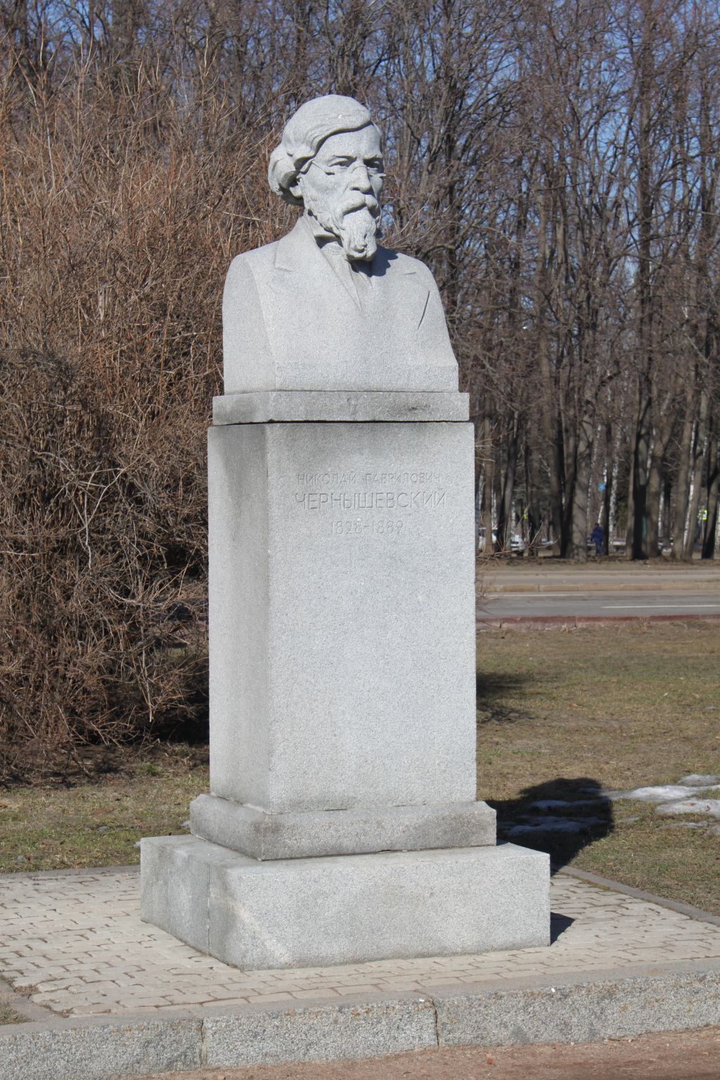 местоположение памятника, его роль в композиционно-планировочной структуре ансамбля \"Аллея ученых\" (согласно приложению 1 к настоящему предмету охраны);объемно-пространственная композиция и архитектурно-художественное оформление памятника 1954 года, включающие гранитный бюст Н.Г.Чернышевского с плинтом, на прямоугольном постаменте с цоколем, на выступающем стереобате, включая их габариты и высотные отметки (с учетом реставрационных работ 2017 года; согласно приложению 1 к настоящему предмету охраны);конструкция, материал (светло-серый (янцевский) гранит), характер и виды обработки поверхностей (тонкая и зернистая шлифовка, рельеф), колористическое решение памятника 1954 года;шрифтовая композиция 1954 года: \"НИКОЛАЙ ГАВРИЛОВИЧ ЧЕРНЫШЕВСКИЙ 1828-1889\", ее местоположение, характер шрифта, способ нанесения (контррельеф), колористическое решение (согласно приложению 1 к настоящему предмету охраны).Изменение предмета охраны объекта культурного наследия регионального значения (ансамбля) \"Комплекс зданий Московского государственного университета им. М.В.Ломоносова\" может быть осуществлено в порядке и случаях, предусмотренных законодательством об объектах культурного наследия.