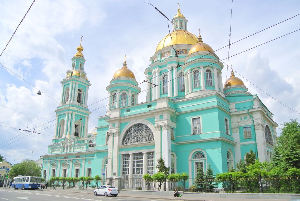 местоположение и градостроительные характеристики храма, участвующего в формировании застройки Елоховской площади, Елоховского проезда, Спартаковской и Нижней Красносельской улиц, его роль в композиционно-планировочной структуре квартала (согласно схеме предмета охраны); объемно-пространственная композиция храма конца XVIII − XIX веков, включающая двусветный четырехстолпный четверик с наружными лестницами, ризалитами с портиками, большой центральной ротондой и четырьмя малыми угловыми ротондами с куполами, барабанами и главками с крестами, квадратную в плане со скругленными углами четырехстолпную трапезную с аттиками, восьмериком с фронтонами и куполом, трехъярусную колокольню с тремя наружными лестницами, портиками, завершенную куполом с четырьмя фигурными люкарнами с часами, граненым барабаном с фронтонами и главкой с крестом (согласно схеме предмета охраны), включая высотные отметки по венчающим карнизам, парапетам, аттикам, фронтонам, люкарнам (с учетом реставрационных работ 1970 − 1980-х годов);крыши, купольные завершения, главы с крестами XIX века, включая центральный купол с широкими плоскими гуртами, их конфигурация, материал, характер кровельного покрытия, в том числе высотные отметки по конькам, зенитам куполов, подкрестным яблокам (уточняется в процессе реставрационных исследований); композиционное решение и архитектурно-художественное оформление фасадов конца XVIII − XIX веков, в том числе местоположение, форма, размер, оформление оконных и дверных проемов, арочных и прямоугольных ниш, наличники с фронтонами на консолях, накладными досками с лепниной, медальоны с лепными розетками, белокаменный цоколь, филенки, лопатки, пилястры, колонны, в том числе сдвоенные, портики, плоские и профилированные архивольты, межъярусные карнизы, подоконные тяги, пояса сухариков и мутул, венчающие карнизы, аттики в парапетных столбах, фронтоны, балясник ограждения ярусов звона, люкарны с волютами и часами в основании купола колокольни, в том числе фрески (с учетом реставрационных работ 1970 − 1980-х годов; согласно схеме предмета охраны);материал и характер отделки фасадных поверхностей конца XVIII − XIX веков, в том числе белокаменный цоколь и детали, руст, гладкая штукатурка с окраской (уточняется в процессе реставрационных исследований);колористическое решение фасадов конца XVIII − XIX веков (уточняется в процессе реставрационных исследований); пространственно-планировочная структура интерьеров храма конца XVIII − XIX веков в пределах капитальных стен, опорных конструкций, подпружных арок и перекрытий, в том числе сводчатых (с учетом реставрационных работ 1970 − 1980-х годов; согласно схеме предмета охраны);капитальные стены, пилоны, столбы, колонны и перекрытия конца XVIII − XIX веков, включая своды, их конструкции и материал (с учетом реставрационных работ 1970 − 1980-х годов; согласно схеме предмета охраны);внутристенная лестница на колокольню конца XVIII − XIX веков, ее местоположение, конструкция, материал (с учетом реставрационных работ 1970 − 1980-х годов; согласно схеме предмета охраны);архитектурно-художественное оформление интерьеров конца XVIII − XIX веков, включая профилированные карнизы, тяги, архивольты, орнаментальные фризы по сводам арок, позолоченную лепнину (розетки, пальметты, акант, консоли, лепные валики с картушами на парусах), балюстр