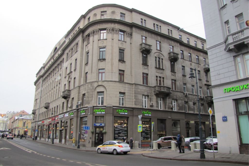 местоположение и градостроительные характеристики здания, его роль в композиционно-планировочной структуре ансамбля; объемно-пространственная композиция 6-этажного с двумя открытыми внутренними дворами здания 1912-1915 гг., в том числе проездные арки, перекрытые сводами, эркеры, аттики, высотные отметки по венчающим карнизам и аттикам; крыша 1912-1915 годов, ее конструкция, конфигурация, материал и характер кровельного покрытия, высотные отметки по конькам, слуховые окна; композиционное решение и архитектурно-художественное оформление фасадов 1912-1915 годов, в том числе местоположение, размер, форма и оформление оконных и дверных проемов, включая трехчастные полуциркульные \"термальные\" окна, \"римские\" окна, веерный надоконный руст, открытые балконы на кронштейнах с ограждением из балясника, полуколонны и пилястры коринфского и ионического ордеров, междуэтажные и венчающие карнизы, руст, филенки, ниши, многофигурные барельефы с композициями на исторические сюжеты, в том числе две летящие \"славы\" в поле аттика, лепные медальоны, гирлянды, вазоны в нишах, кессоны с розетками, маскароны, орнаментальные лепные фризы, пояски иоников, бус, \"сухариков\", декоративное, в том числе лепное, оформление стен и сводов проездных арок; материал и характер отделки фасадных поверхностей 1912-1915 годов (гладкая штукатурка, руст, окраска дворовых фасадов по кирпичу без штукатурки); колористическое решение фасадов 1912-1915 годов (уточняется в процессе натурных реставрационных исследований); пространственно-планировочная структура интерьеров зданий в пределах капитальных стен и перекрытий 1912-1915 годов; архитектурно-художественное оформление интерьеров общественных зон 1912-1915 годов, в том числе деревянные входные тамбуры, полы, лепные барельефы, пилястры в вестибюлях, рельефы; парадные лестницы 1912-1915 годов, их местоположение, конструкция, материал и декоративное оформление, включая фигурные металлические ограждения, ступени из натурального камня и деревянные поручни; столярные заполнения оконных и дверных проемов 1912-1915 годов, со скобяным прибором, их материал, характер оформления и колористическое решение, включая входные двери с деревянными тамбурами, филенчатые входные двери в квартиры. Предмет охраны может быть уточнен при проведении натурных реставрационных исследований.