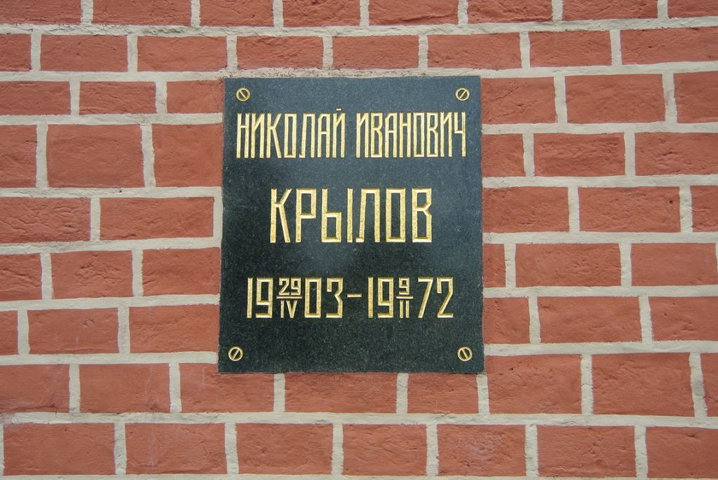 местоположение урны с прахом Крылова Николая Ивановича (1903–1972) в Кремлевской стене, между Сенатской и Спасской башнями Кремля, с левой стороны от Мавзолея В.И.Ленина (согласно приложению к настоящему предмету охраны);урна с прахом Крылова Николая Ивановича (1903–1972), ее форма, габариты, оформление; ниша в Кремлевской стене, в которой установлена урна с прахом Крылова Николая Ивановича (1903–1972), ее форма, габариты, материал;плита, закрывающая нишу с урной, ее форма, размеры (35х40 см), материал (черный гранит), колористическое решение, характер и вид обработки лицевой поверхности (полировка, гравировка) и оформление, включая декоративные винты крепления по четырем углам (согласно приложению к настоящему предмету охраны);шрифтовая композиция на плите с памятной надписью: \"НИКОЛАЙ ИВАНОВИЧ КРЫЛОВ 19 29/IV 03 – 19 9/II 72\", включая технику нанесения (контррельеф), характер шрифта, покрытие и колористическое решение (золочение) (согласно приложению к настоящему предмету охраны).Изменение предмета охраны может быть осуществлено в порядке и случаях, предусмотренных законодательством об объектах культурного наследия.