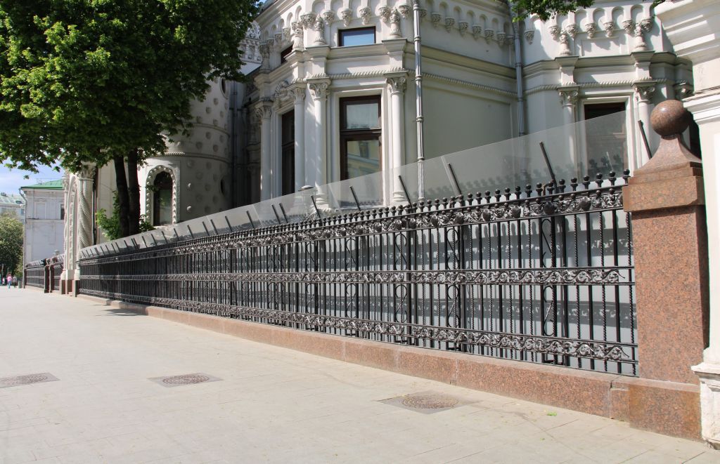 местоположение и градостроительные характеристики ограды с воротами конца XIX века, участвующей в формировании фронта застройки улицы Воздвиженки, ее роль в композиционно-планировочной структуре ансамбля и квартала (согласно схеме предмета охраны);объемно-пространственная композиция ограды конца XIX века, включая цоколь, квадратные в сечении столбы и металлические решетки ограды, в том числе габариты и высотные отметки (согласно схеме предмета охраны);композиционное решение и архитектурно-художественное оформление ограды конца XIX века, включая ограду с воротами на открытой площадке портала-привратницкой здания конца XIX века, в том числе цоколь, столбы с завершениями в виде шаров на пирамидальных подставках, металлические ажурные решетки и створки ворот из чередующихся гладких и витых вертикальных прутьев, завершенных шарами, и трех поясов с растительным орнаментом и ракушками на верхнем поясе (согласно схеме предмета охраны); конструкция, материал и характер отделки ограды конца XIX века, включая полированный красный гранит цоколя и столбов, художественный металл, элементы крепежа.Изменение предмета охраны может быть осуществлено в порядке и случаях, предусмотренных законодательством об объектах культурного наследия.